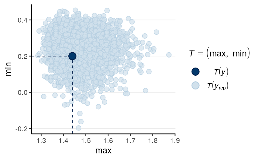We should do the posterior predictive check with test statistics too. The following functions show the mean, maximum value, and minimum value of the outcome.