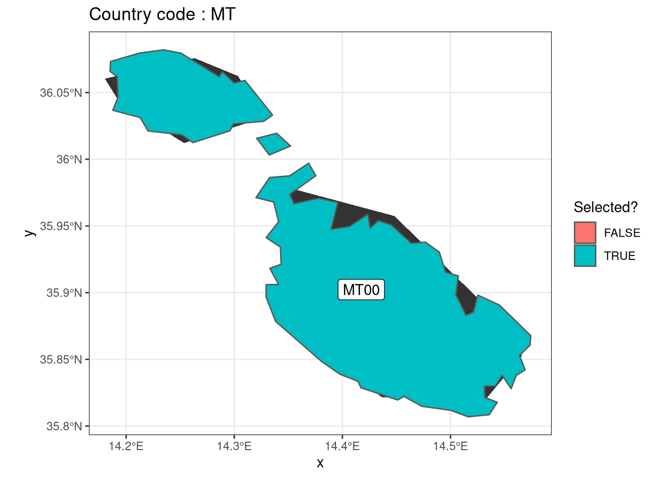 ## 1 2 MT00 MT Malta MT00 (((14.35142 35.9738, 14.… TRUE