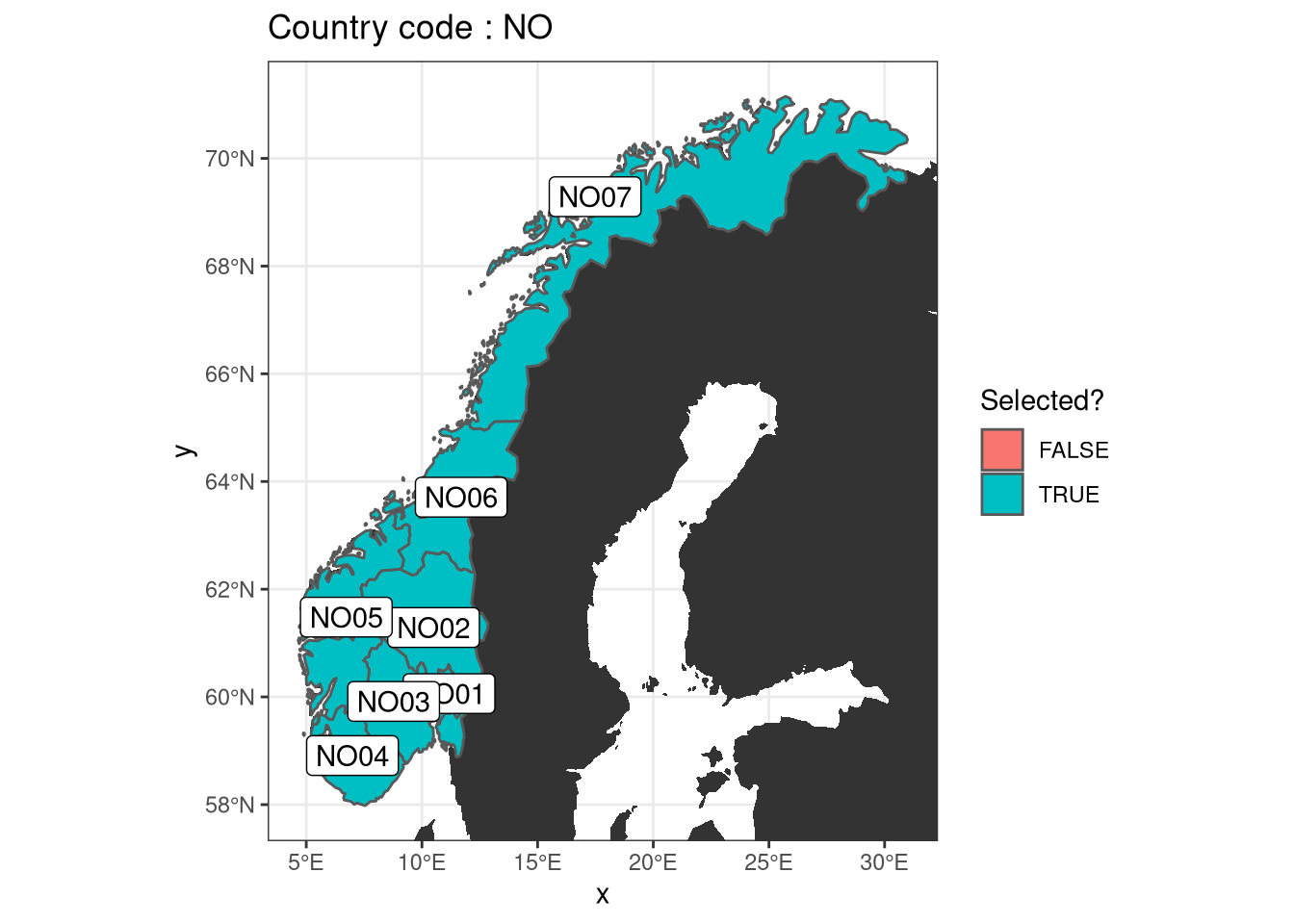 The EU Market Obsevatory for Fisheries and Aquaculture (EUMOFA) provides monthly “First-sale” records on a harbour-by-harbour basis for 16 European countries. We take advantage of this high spatial resolution to examine the climate hazard on a sub-national level, focusing on the NUTS2 regional units where possible. We first excluded Norwegian and Swedish from this analysis, as it was not on the same harbour-level resolution as for the other countries. We merged the EUMOFA first-sales data with geographical metadata (the longitude and latitude of each harbour) provided by EUMOFA, and used this spatial context to associate the harbour with the corresponding NUTS2 region.