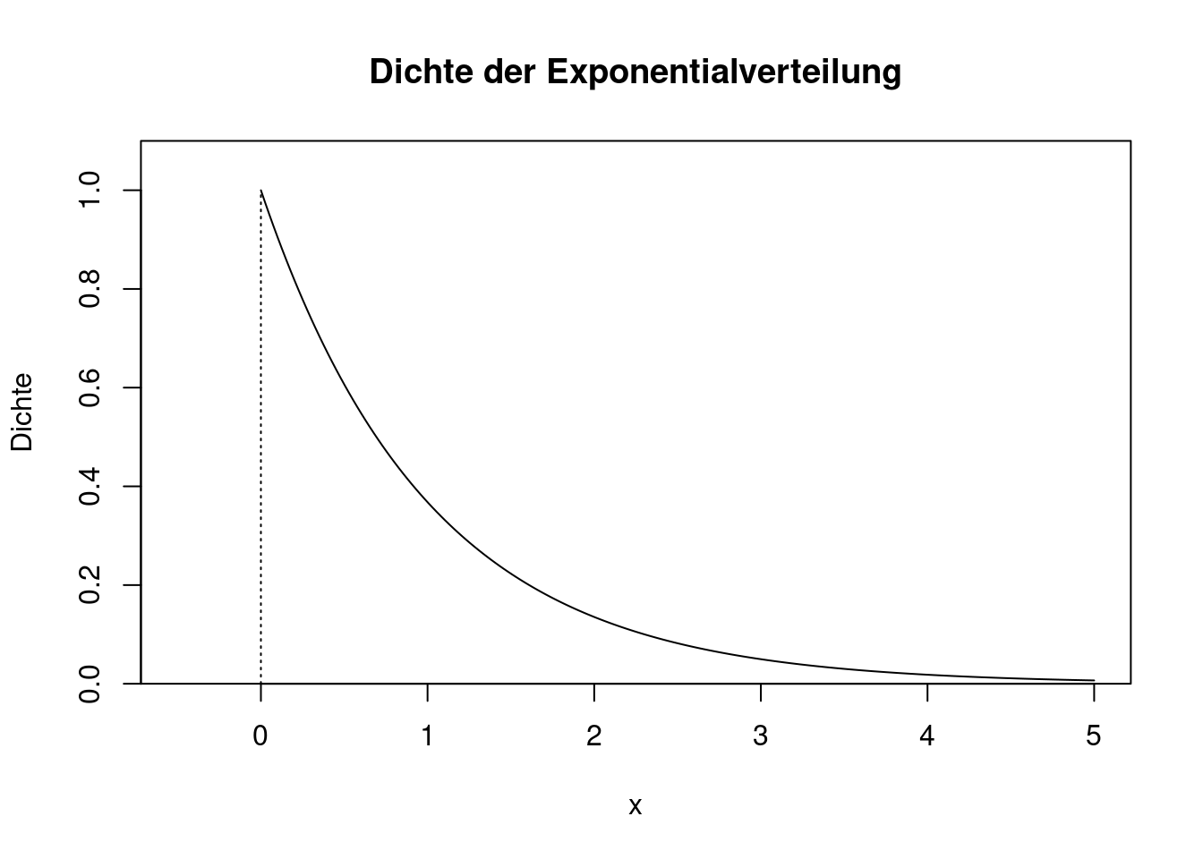 Der Plot zeigt den Verlauf der Dichtefunktion von \(Exp(1)\).
