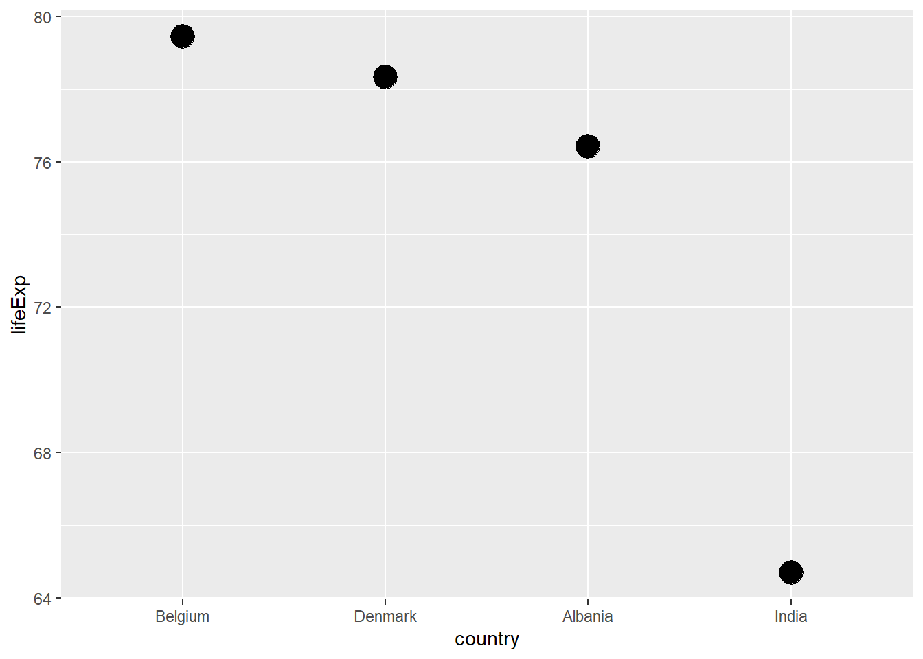 ggplot(mapping = aes(x = country, y = lifeExp)) +