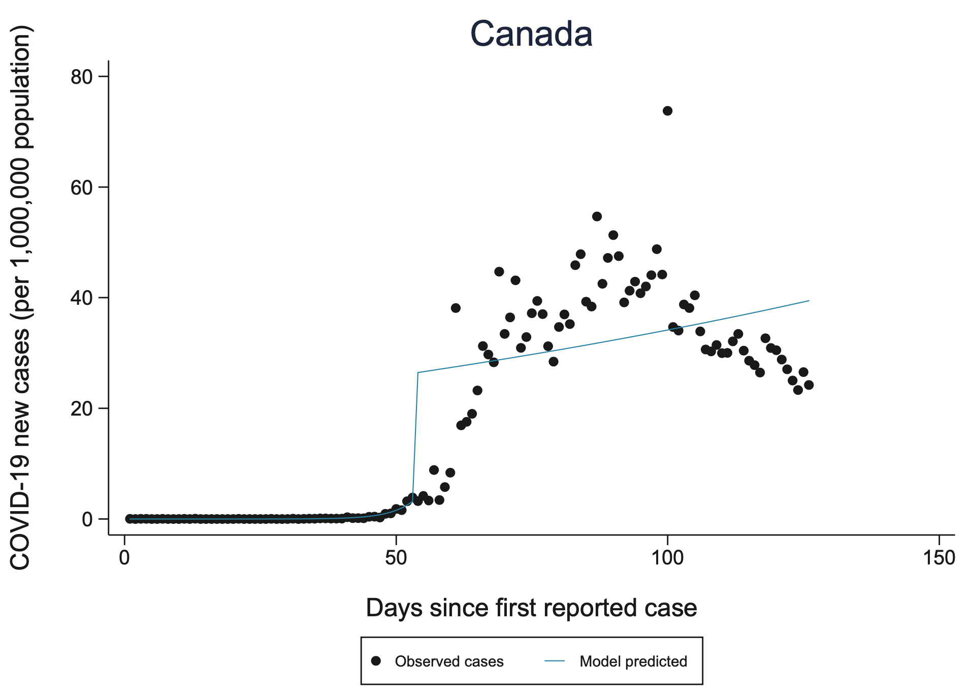- The chart of Canada is buried deep in the appendix of the article, and the fit is better for many other countries