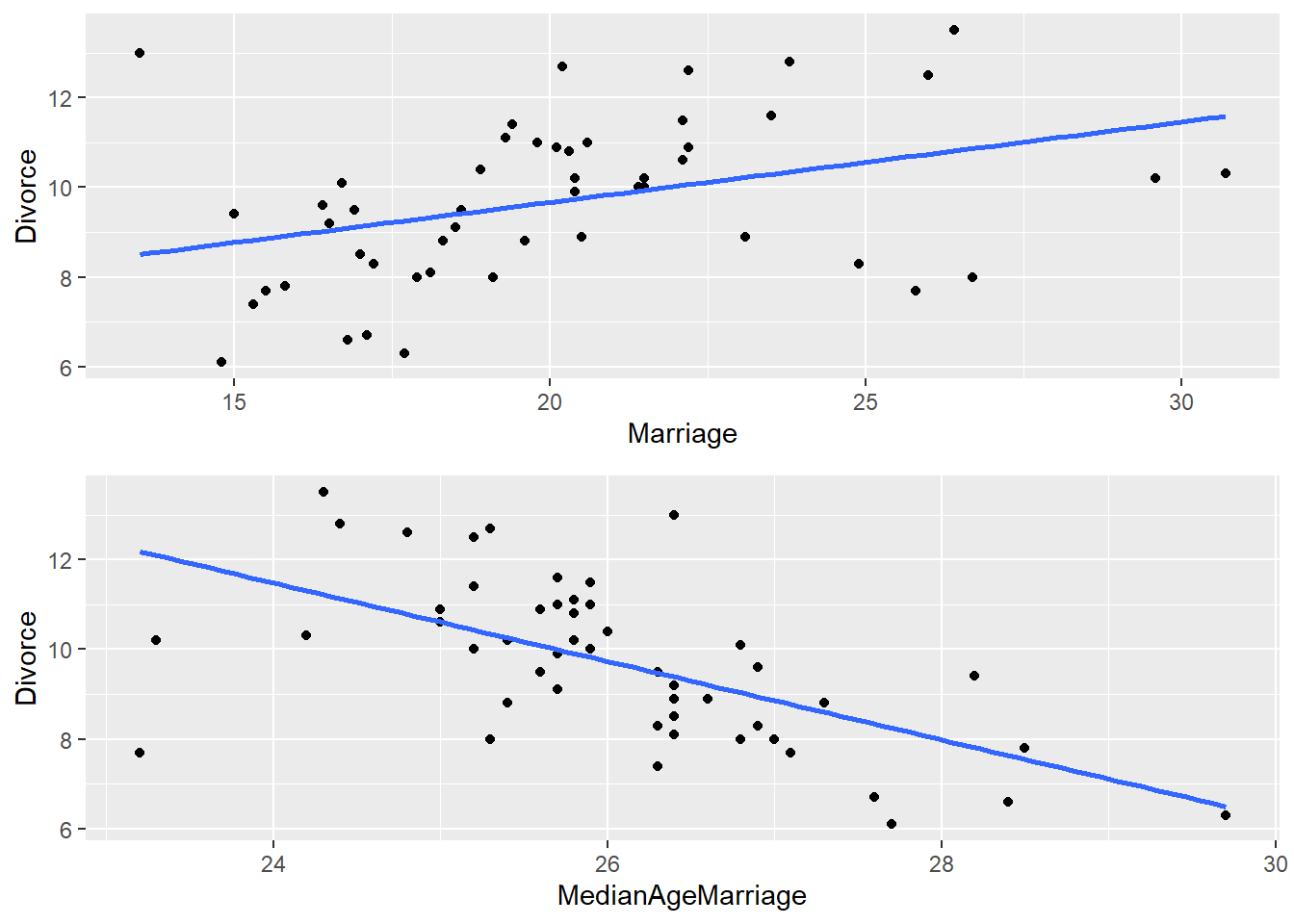 regPorPartesMedianAge <- lm(WaffleDivorce,formula = MedianAgeMarriage ~ Marriage)