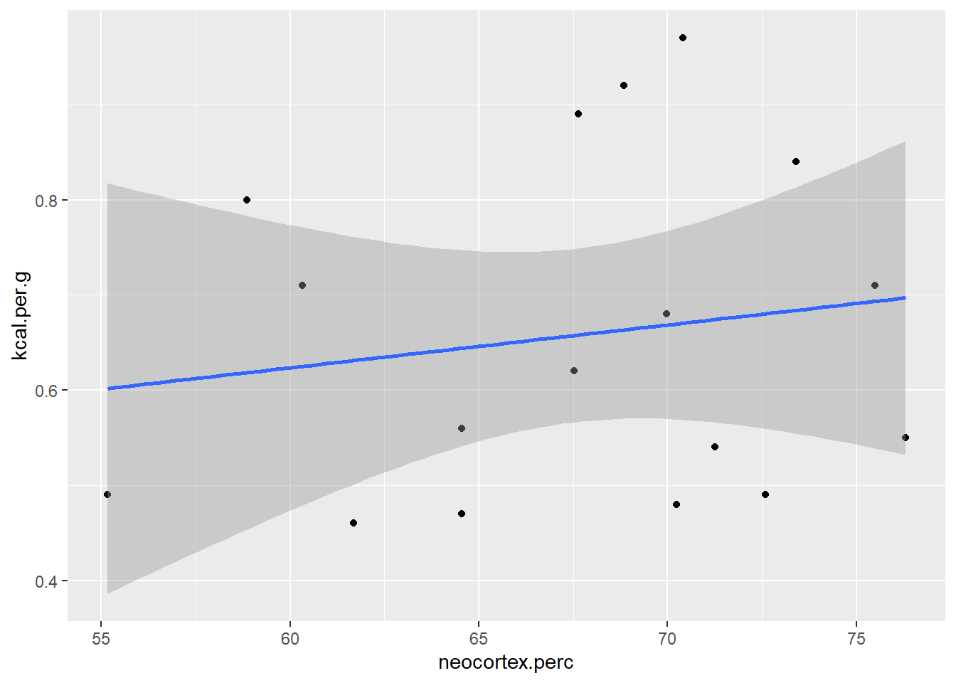 ## lm(formula = kcal.per.g ~ neocortex.perc, data = milk)