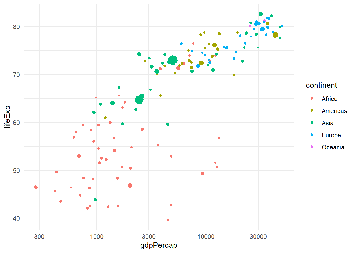 gapminder2007 <- ggplot(data = gapminderLastCut,