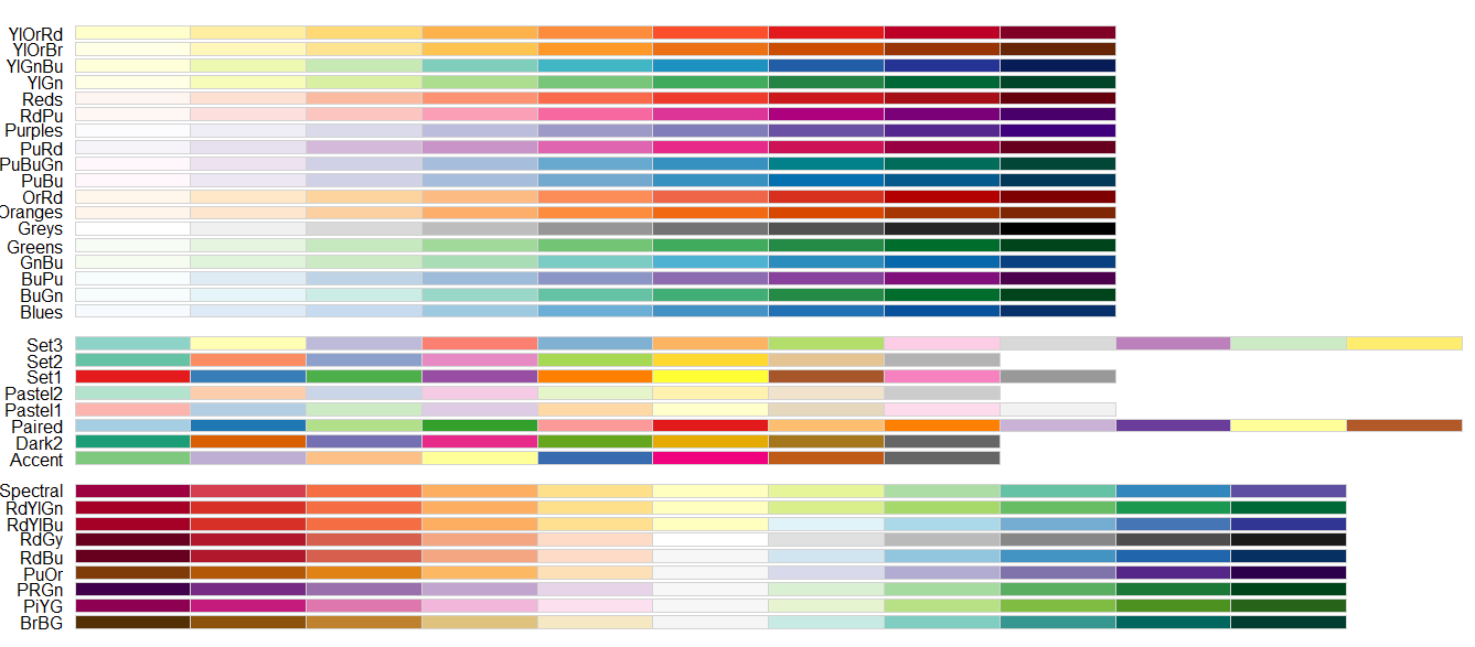brewer.pal(n = 5,name = "Set1")## [1] "#E41A1C" "#377EB8" "#4DAF4A" "#984EA3" "#FF7F00"