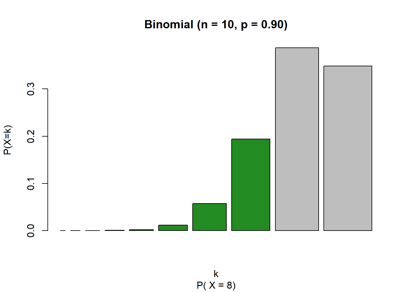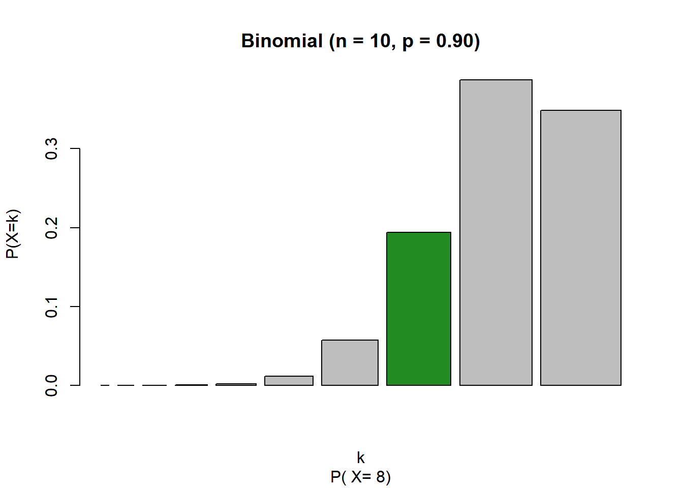 dbinom(x = 8, size = 10, prob = 0.90)+