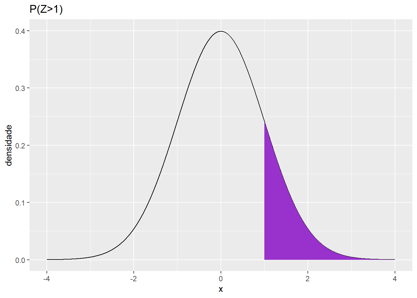 Para calcular probabilidades desse tipo, é simplesmente subtrair de 1 a probabilidade de a variável assumir um valor menor que ‘b’. Assim, fazemos assim: