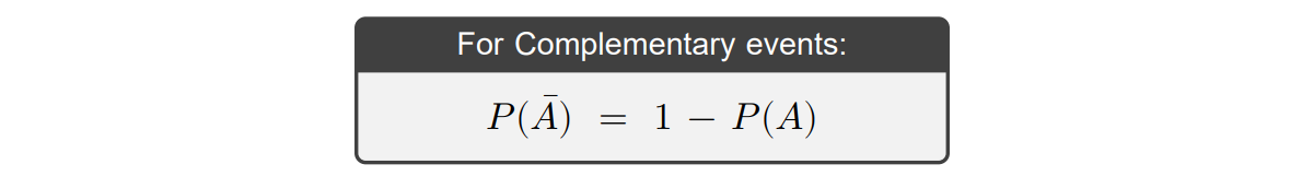 The event \(\textbf{not A}\), often notated as \(\overline{\mathbf{A}}\) or \(\mathbf{A'}\), is called the \(\textbf{complement of }\mathbf{A}\).