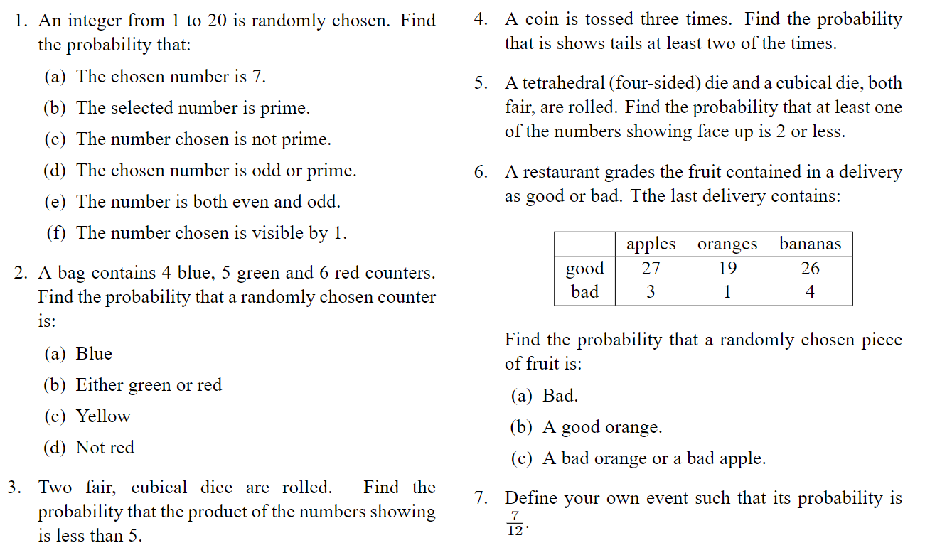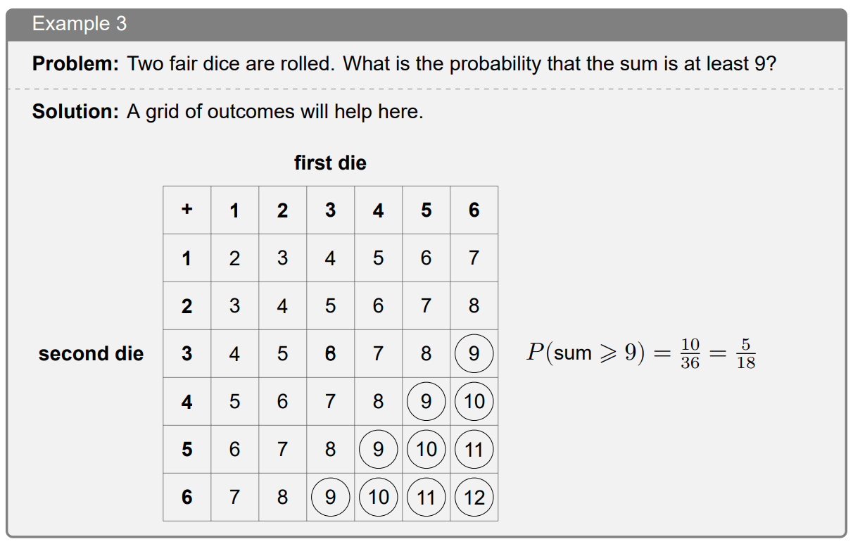 It can help to write out sample spaces. Some sample spaces can be easily described using a simple list, but more organisation may be needed for more complicated sample spaces, such as approaching the list in a systematic manner or using a grid. Remember that sample spaces are seldom useful if each of the outcomes is not equally likely.