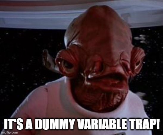 This factor variable has 6 levels, so you would create 6 dummies. Luckily, in R you do not need to create dummy variables; if you run a regression with a factor variable it will do all of this in the background. However, we will use these created dummies a few times in this chapter to see the intuition of what is going on here, and in the real world, often data is already coded in dummy format so it is useful to understand how it works.