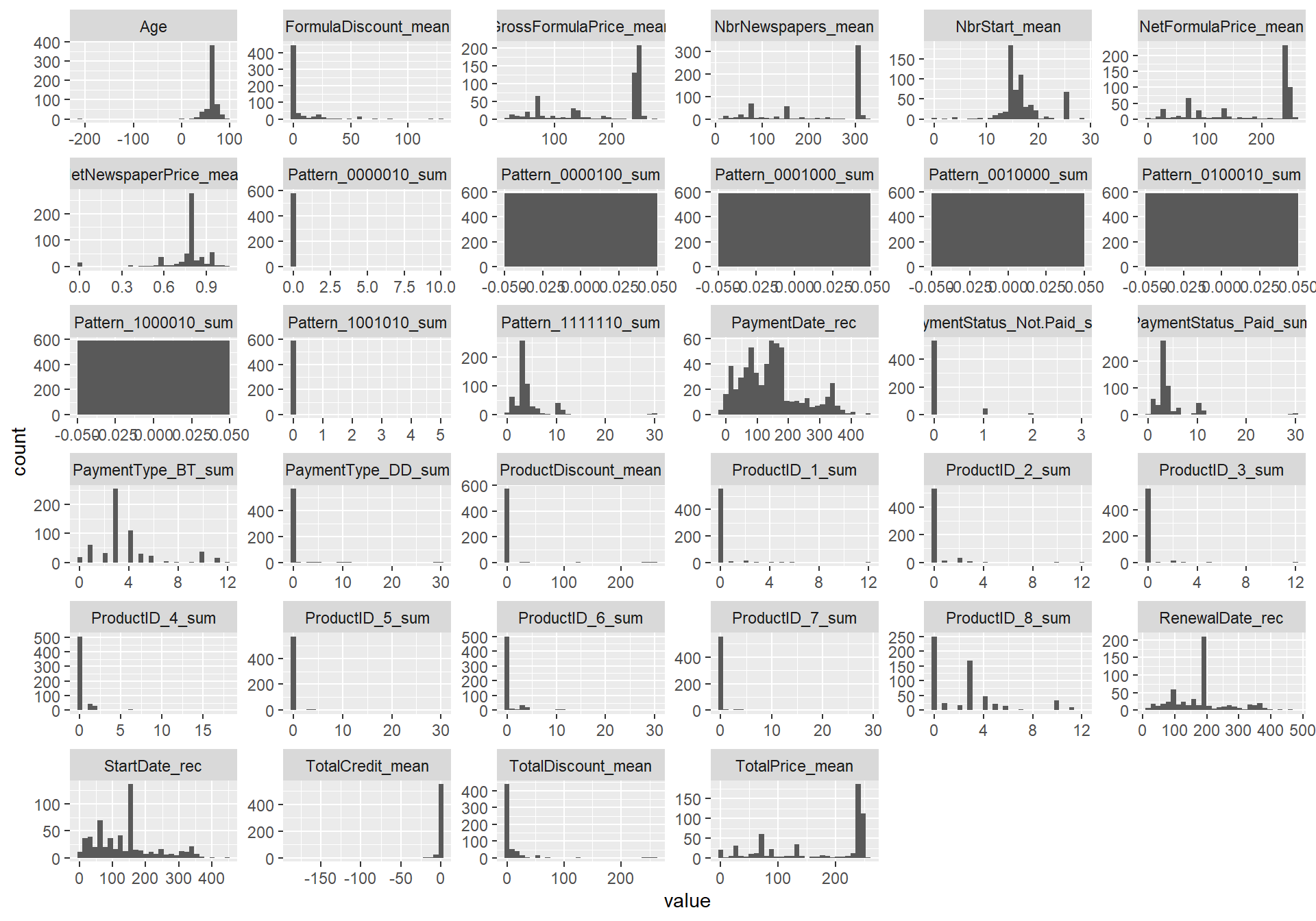 Throughout the book and the exercises, we will be using data from a newpaper publishing company. A newspaper publishing company (NPC) has contacted you to address their increasing churn rates. This evolution has been jumpstarted by the rise of news-websites, and has continued at an accelerating rate due to the popularity of tablet computers and (social) news-aggregator applications. Hence the NPC requires a predictive retention (or churn) model in order to predict which customers will not renew their newspaper subscriptions. Before building a predictive model, a data scientist must always get some understanding of the data (e.g., plots and summary statistics) and solve several data quality issues. Also, before the data can be used in a predictive model several preprocessing steps have to be performed and features should be created.