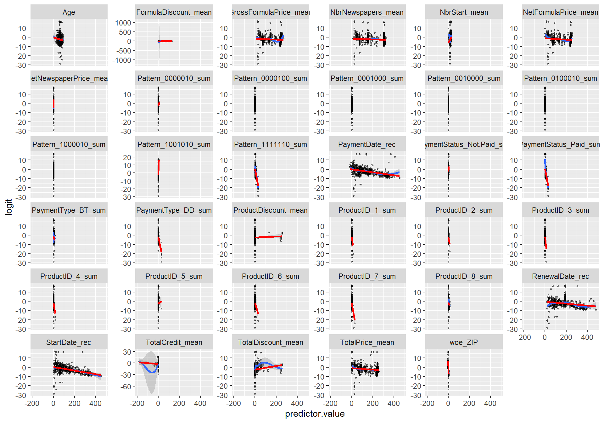 dplyr::select(!c(CustomerID, churn)))[which(woes$IV > 0.1)])## [1] "RenewalDate_rec_flag" "PaymentDate_rec_flag"