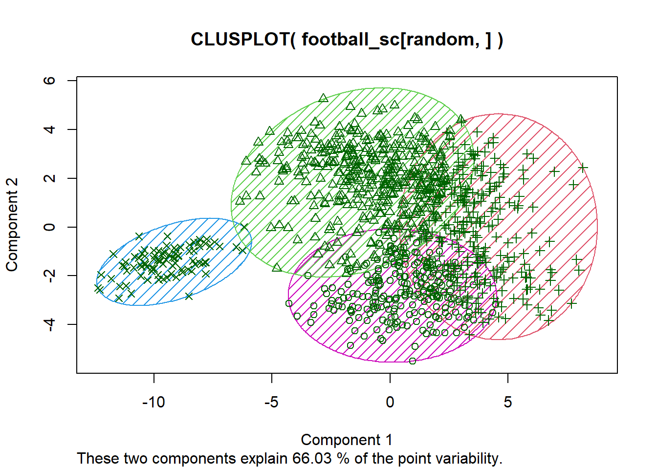 fviz_cluster(list(data = football_sc, cluster = kms[[2]]$cluster),