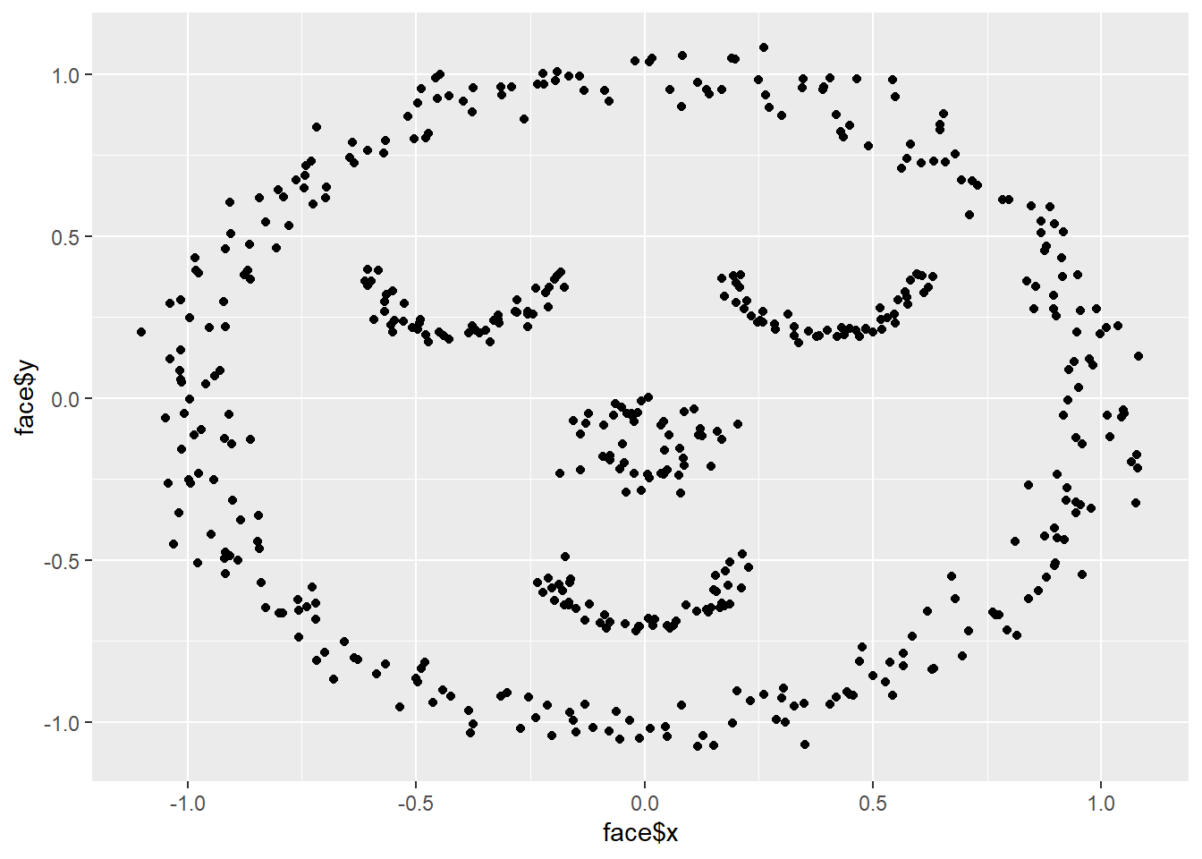 ggplot(face, aes(x, y, col = as.factor(specc_face@.Data))) +