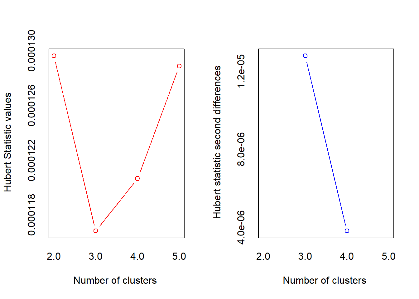 ## In the plot of Hubert index, we seek a significant knee that corresponds to a