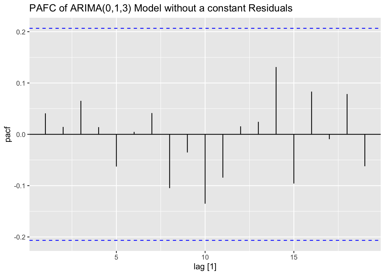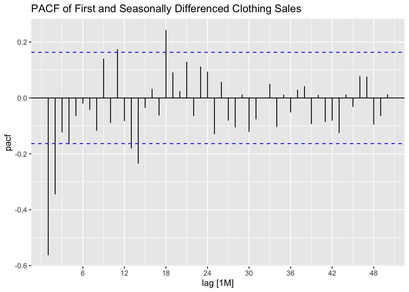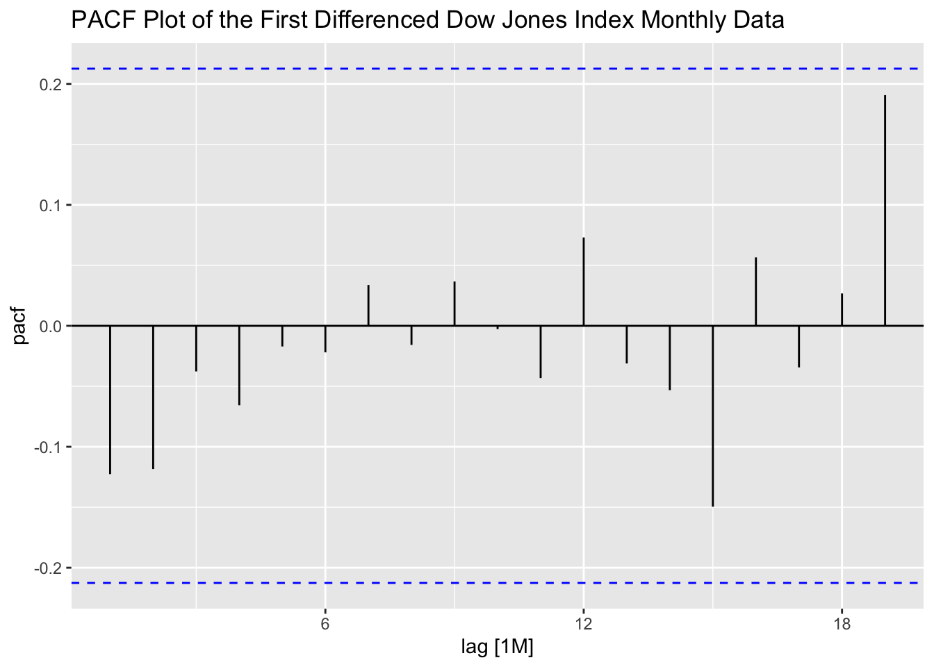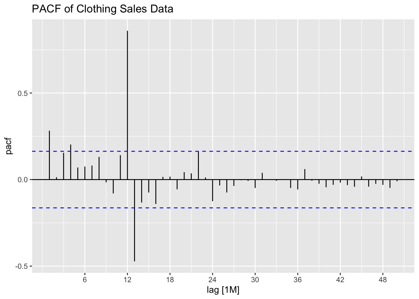 Thus, for an AR(p) model, the PACF between \(y_{t}\) and \(y_{t-k}\) should be zero for all \(k>p\).