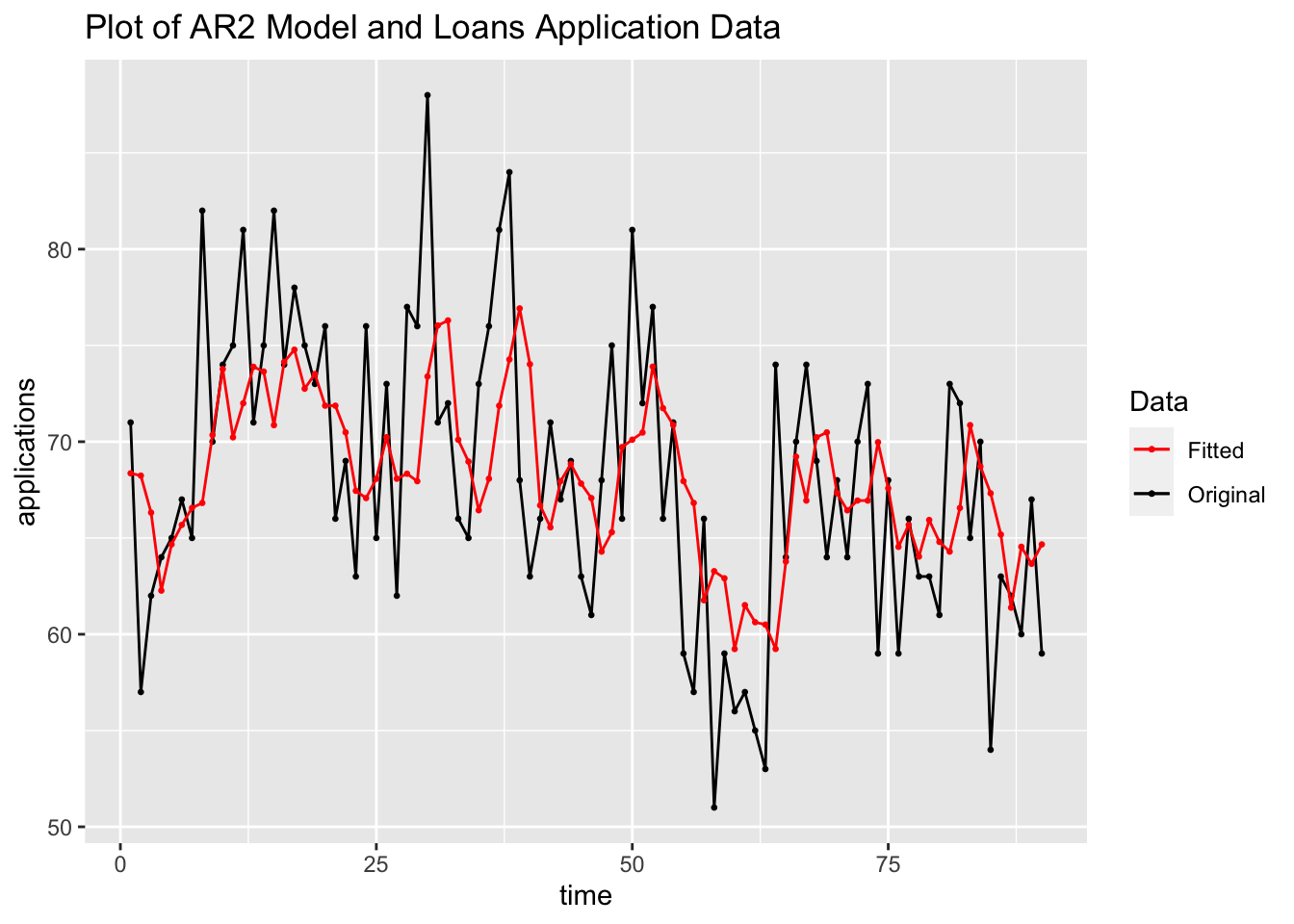 Looking at measures of accuracy and comparing them between models using accuracy(), the linear model with ARIMA errors outperforms the ARIMA model selected above, though the best_arima model performs better than the linear model.