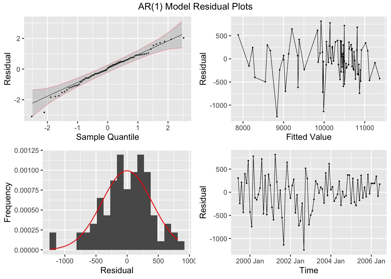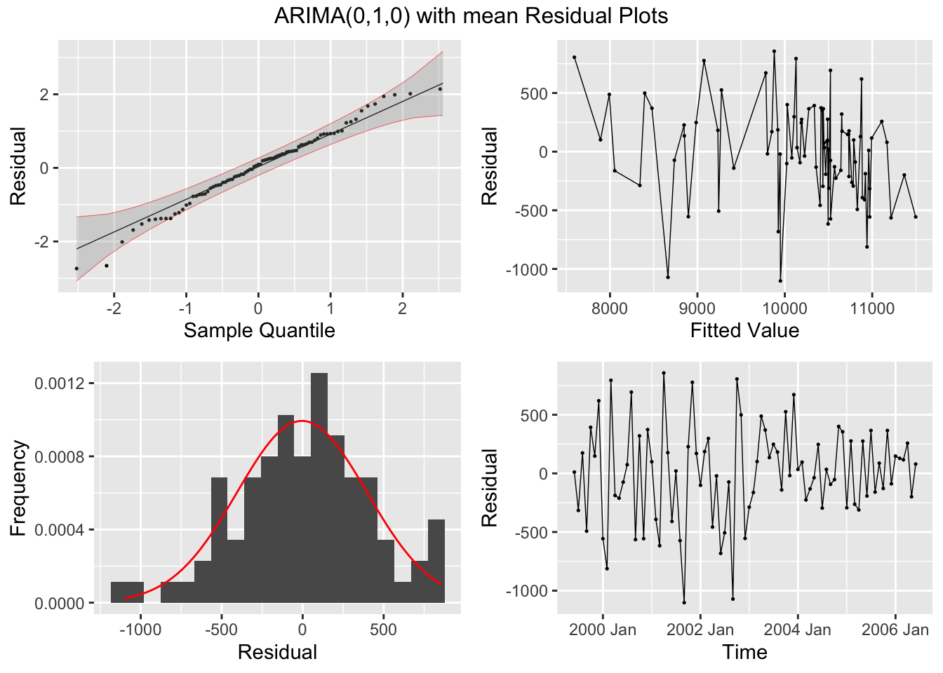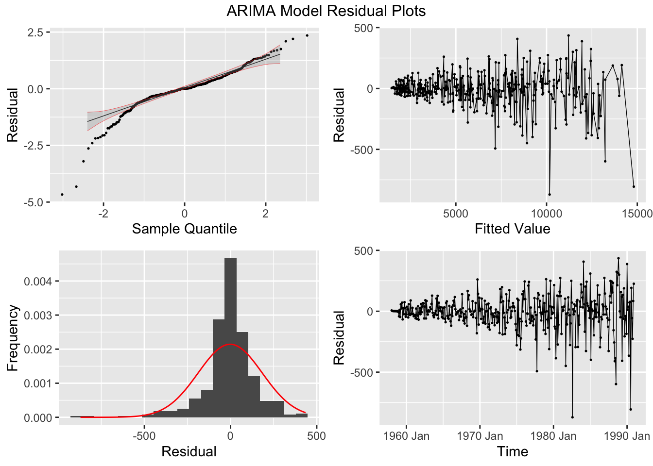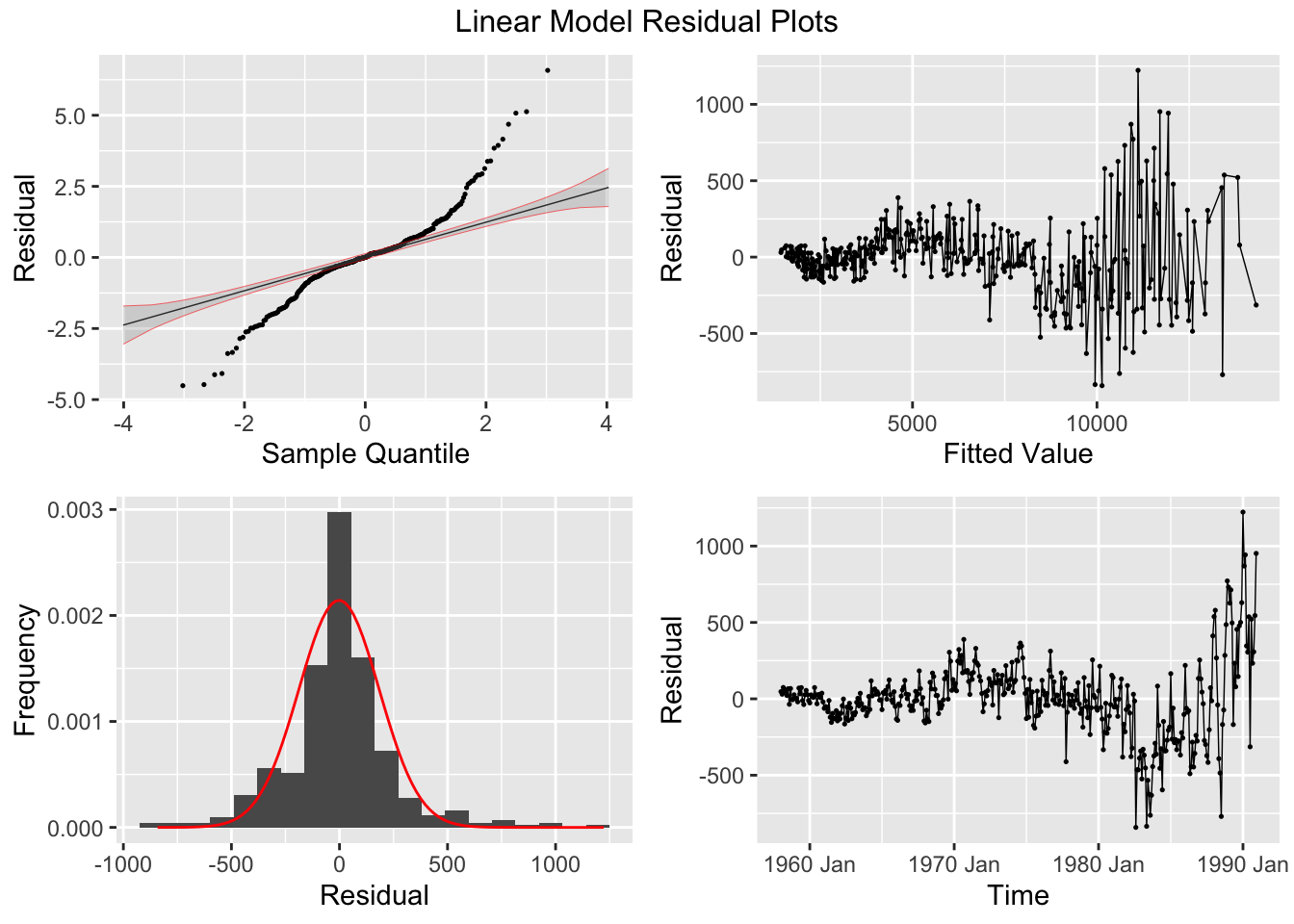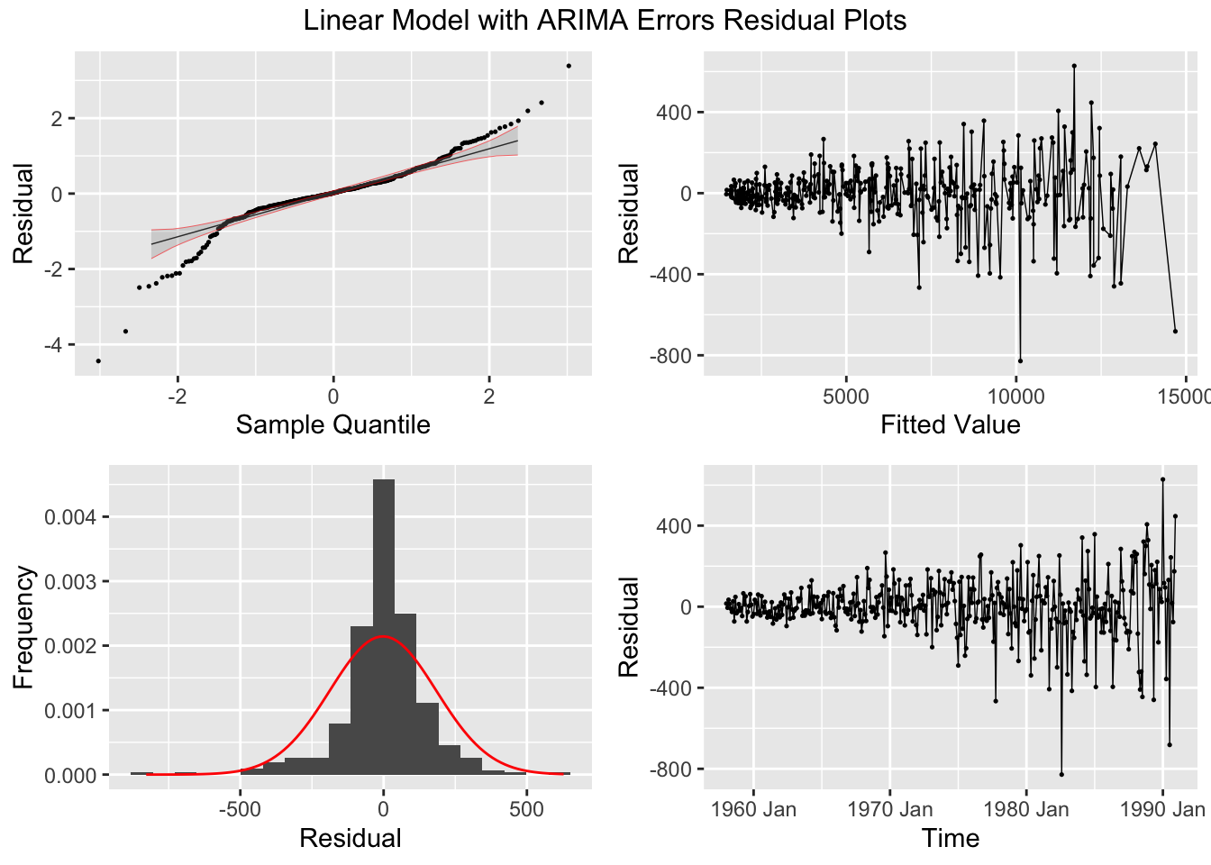 plot_residuals(augment(cbe.fit), title = c("Linear Model", "Linear Model with ARIMA Errors", "ARIMA Model"))## # A tibble: 3 × 3