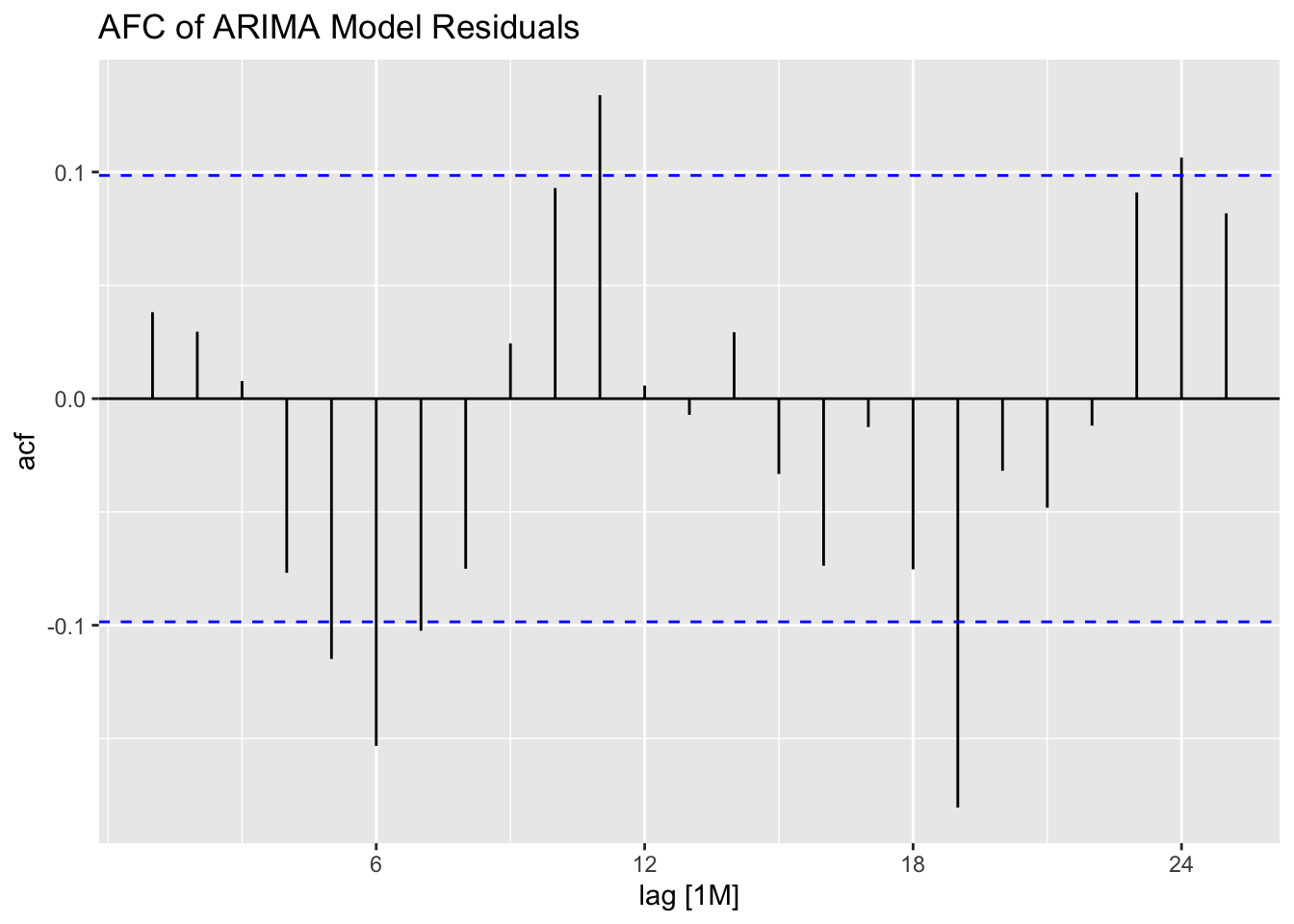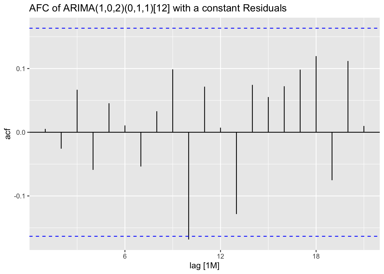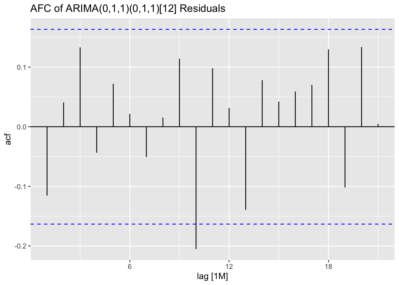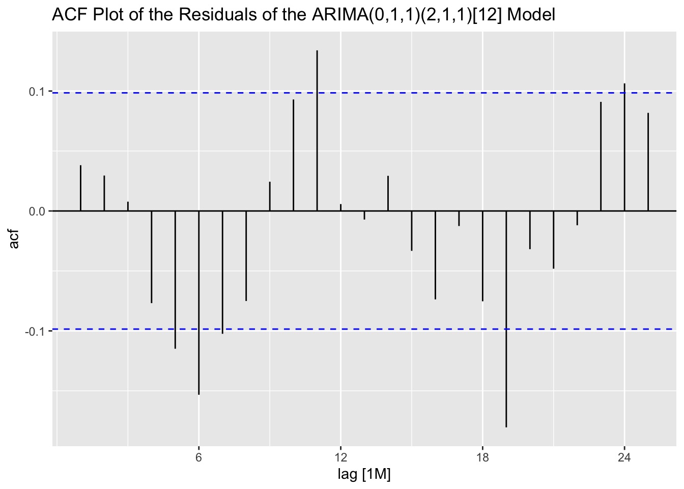 labs(title = "ACF Plot of the Residuals of the ARIMA(0,1,1)(2,1,1)[12] Model")