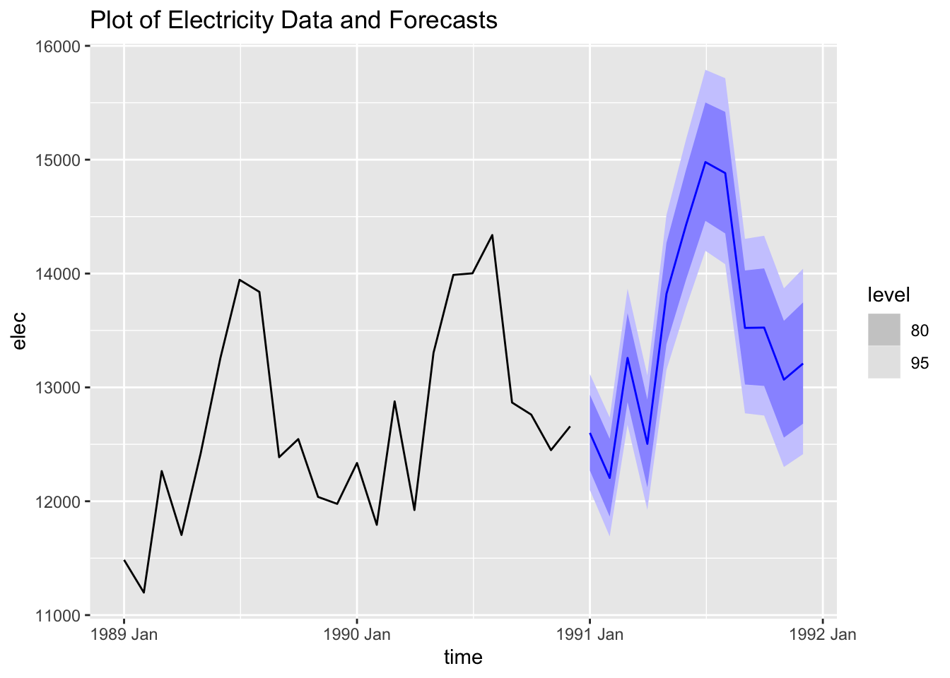 labs(title = "Plot of Electricity Data and Forecasts")