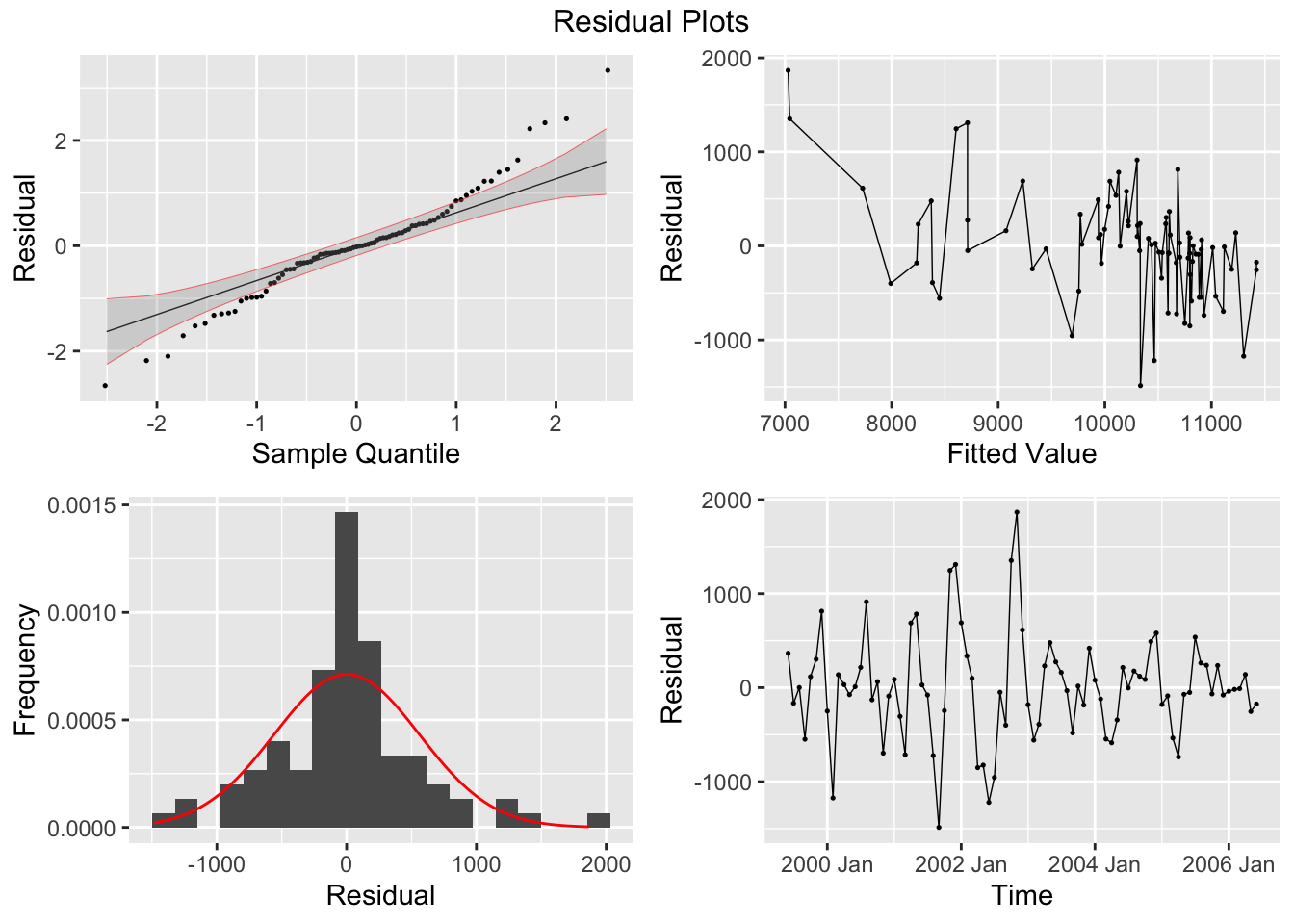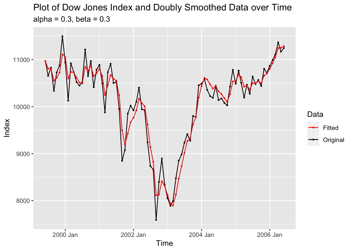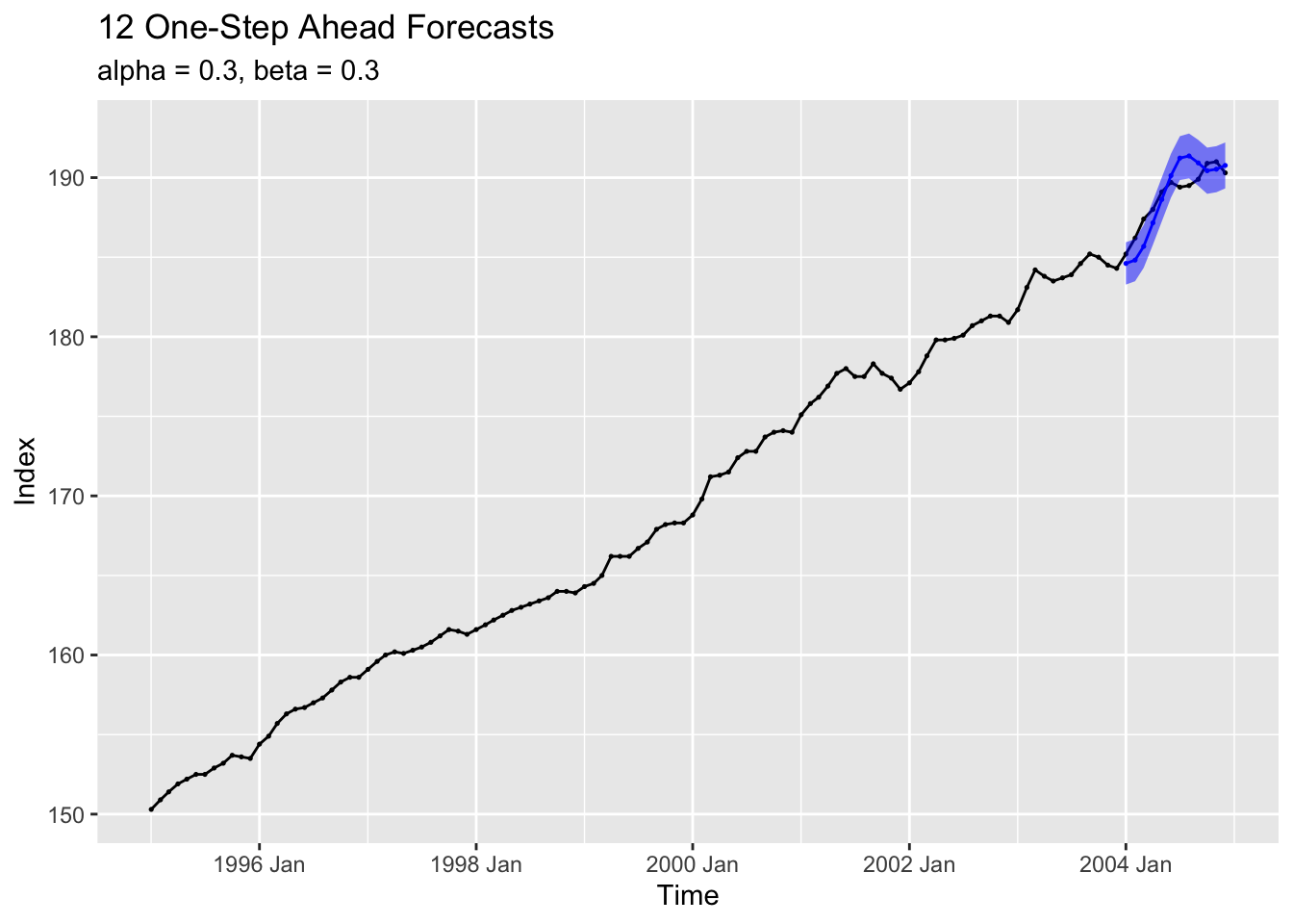 However, even with a quadratic trend model (2nd-degree polynomial), calculations are difficult analytically. So, we would prefer to use an ARIMA model, which is the subject of the next chapter.