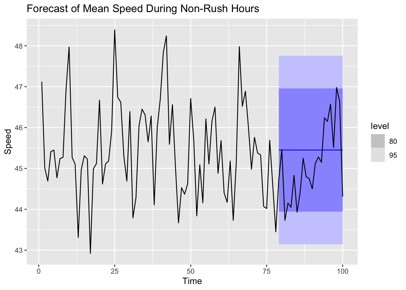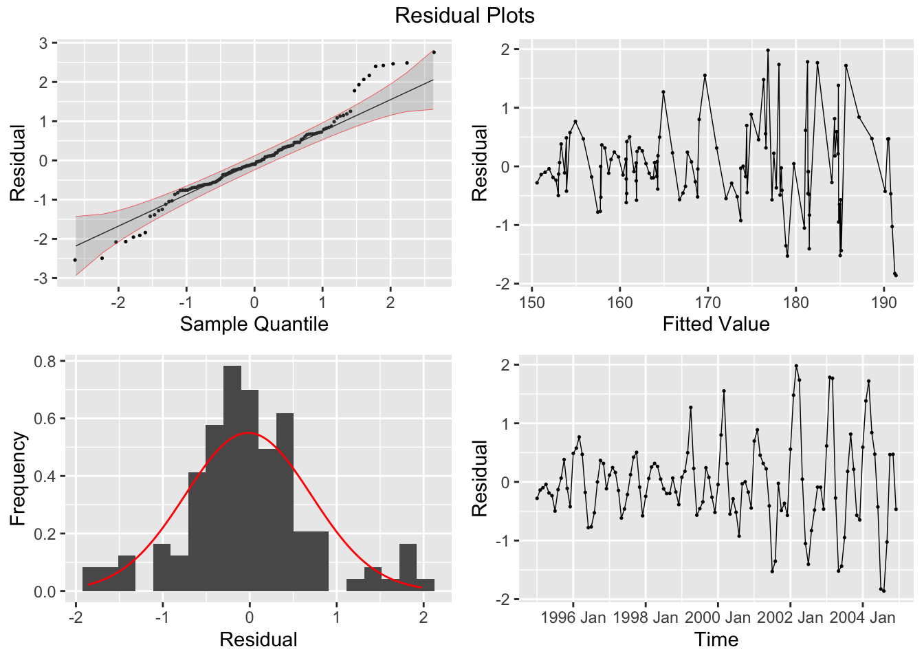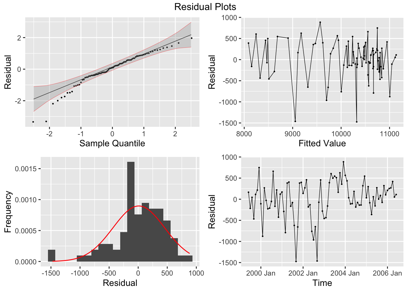 However, even with a quadratic trend model (2nd-degree polynomial), calculations are difficult analytically. So, we would prefer to use an ARIMA model, which is the subject of the next chapter.