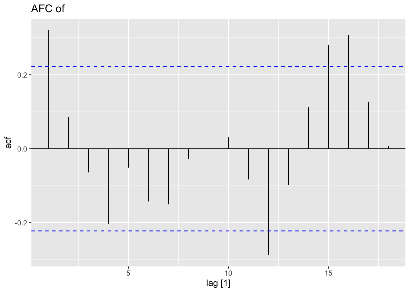 \(\therefore\) the ACF of MA that are k-lags apart is: \[ \rho_{k} = \begin{cases} 1-\frac{\lvert k \rvert}{N}; \space k \lt N \\ 0; \space k \ge N \end{cases} \]