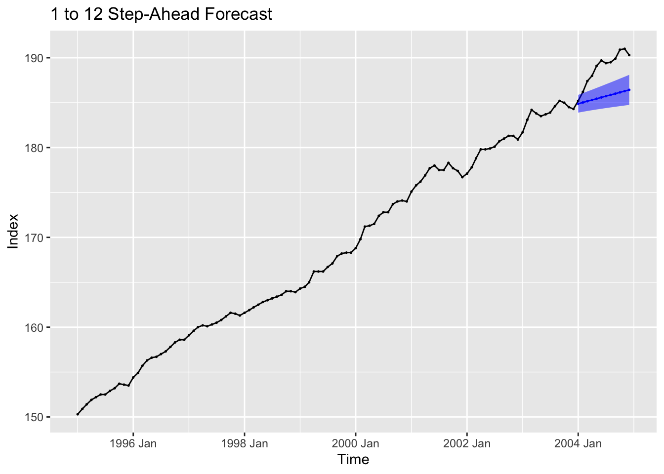 Let the \(\tau\)-step-ahead forecast note at time \(T\) be \(\hat y_{T+\tau}(T)\).
