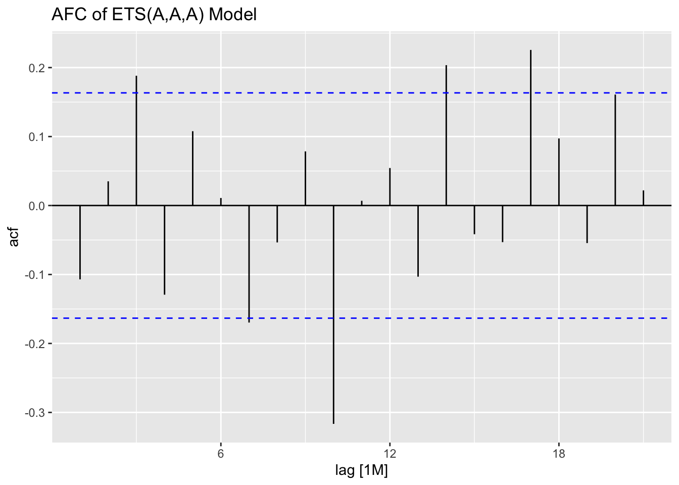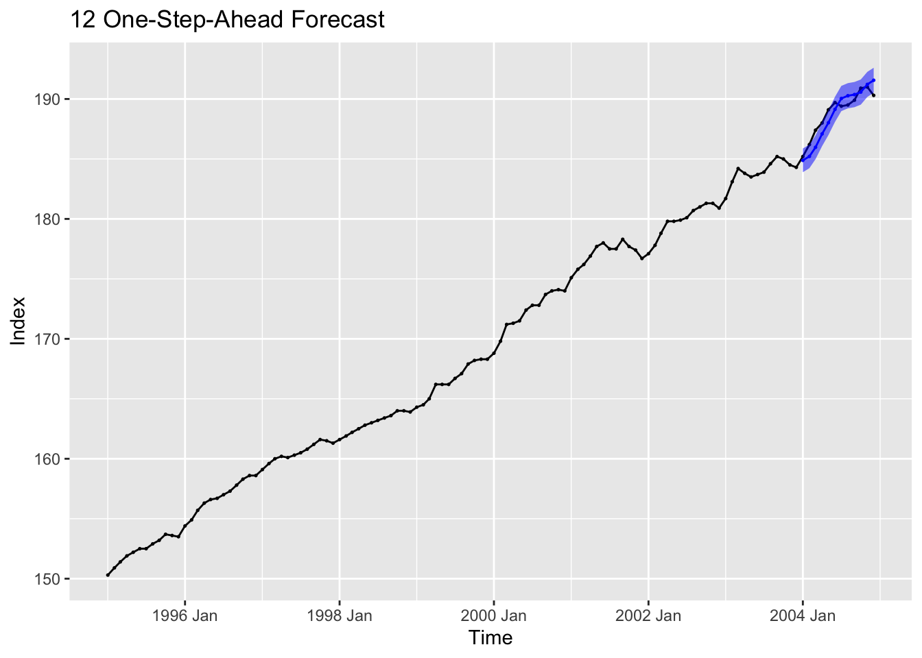 \(\therefore\) Variance of the simple exponential smoother varies between zero (when \(\lambda = 0\)) and the variance of the original time series (when \(\lambda = 1\)).