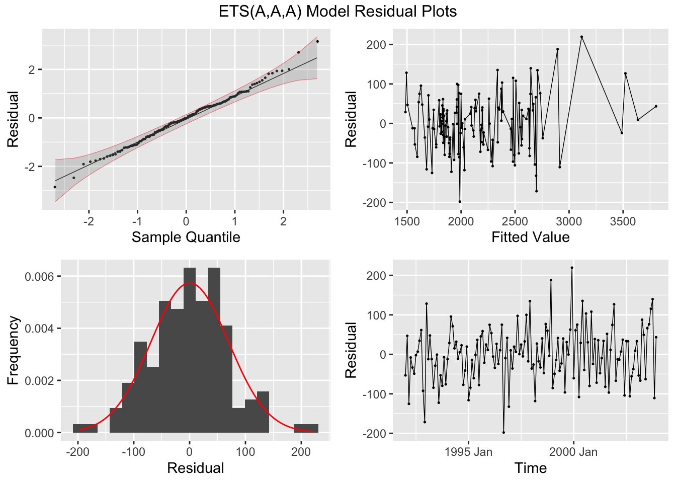 plot_residuals(augment(liquor.fit |> select(additive)), title = "ETS(A,A,A) Model")