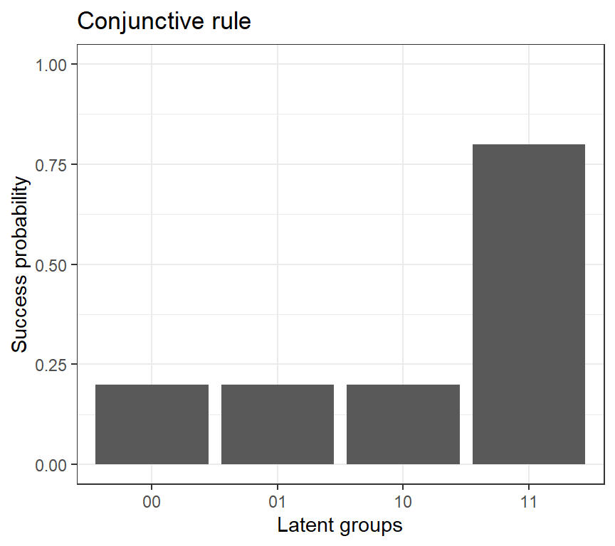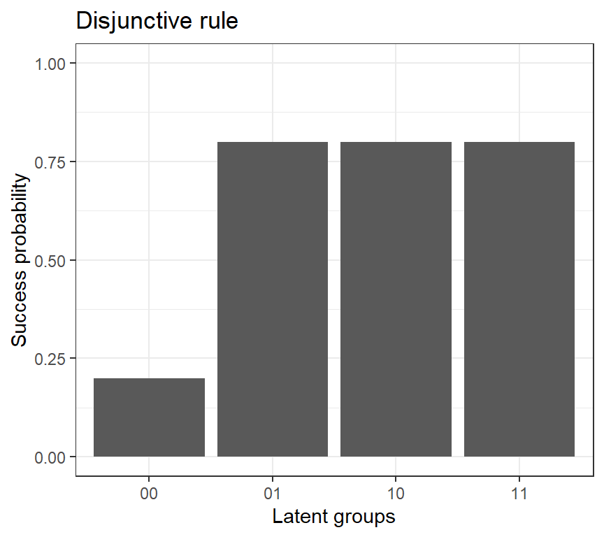 In other words, we need to have some assumptions about how students use attributes to solve item \(j\) (i.e., condensation rule)