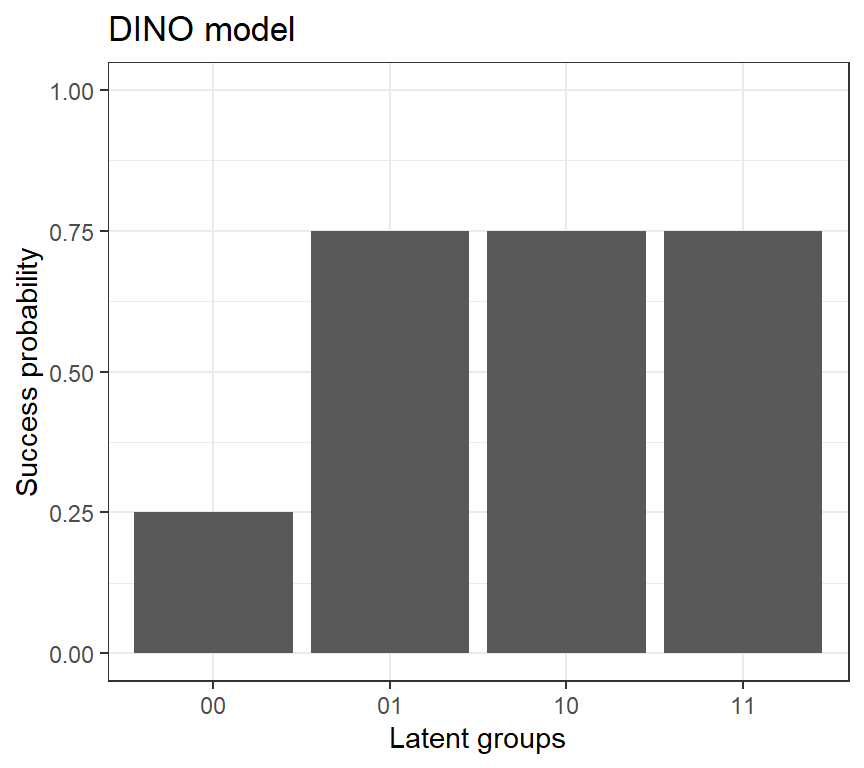 The DINO model has only two parameters per item regardless of the number of attributes \(K\):