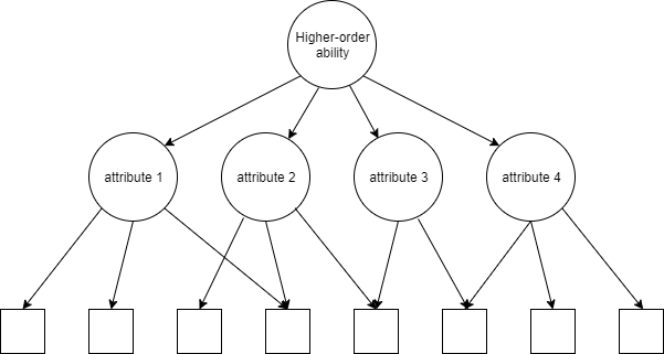 The higher-order model (de la Torre & Douglas, 2004) assumes that the mastery of each attribute is influenced by a higher-order latent trait.