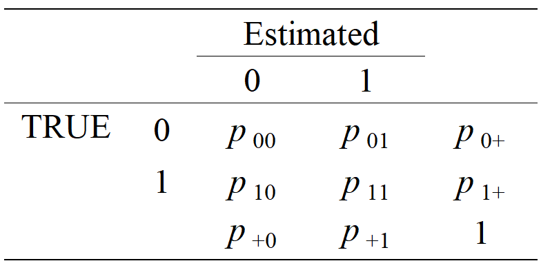 \(P_{ab}= P(\alpha_k = a, \hat{\alpha}_k=b)\)