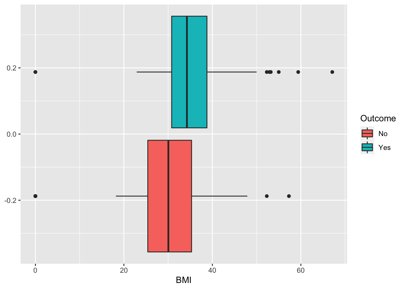 geom_boxplot(aes(BMI,fill=Outcome))