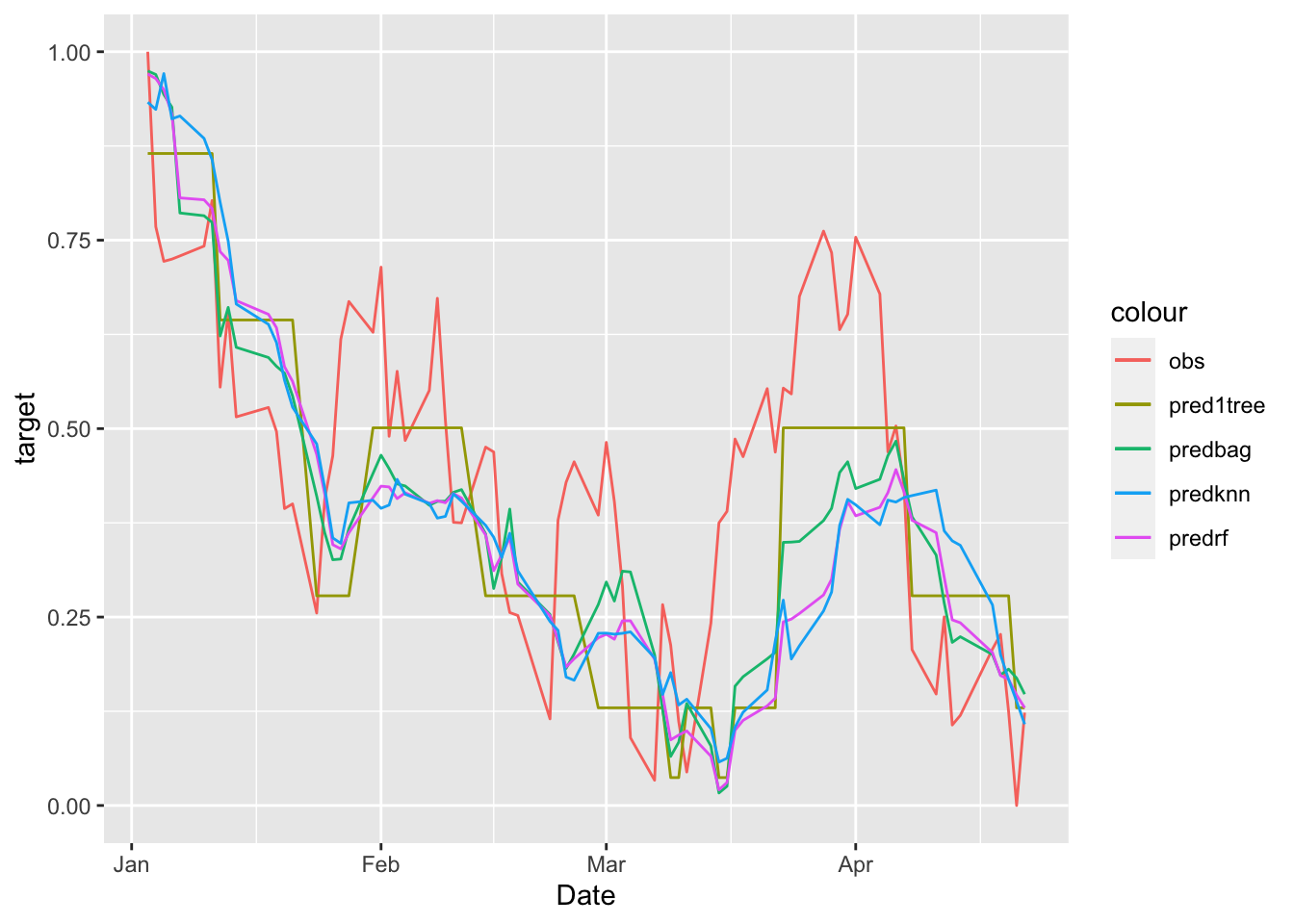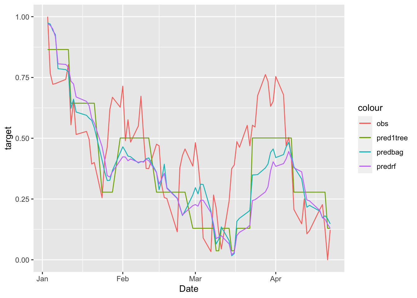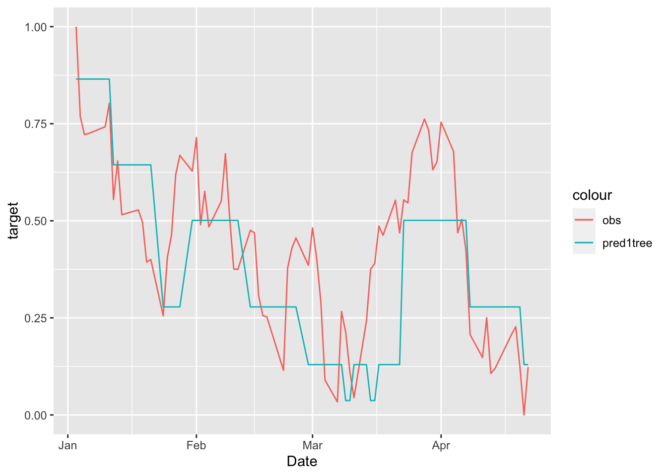 geom_line(aes(Date,predsingletree, col="pred1tree")) +