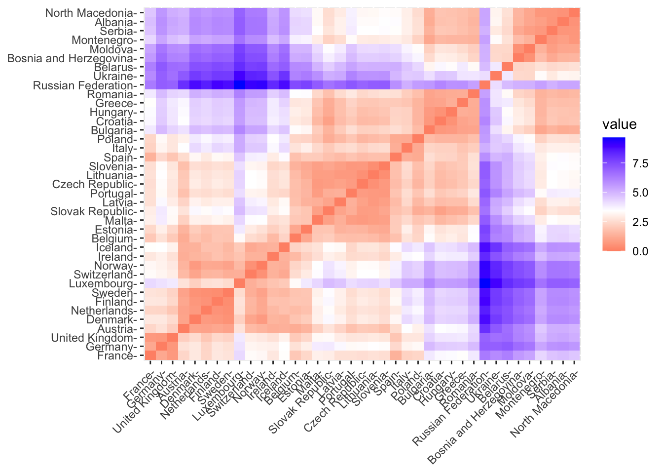 Note that now the Russian Federation is part of a larger group containing eastern countries.
