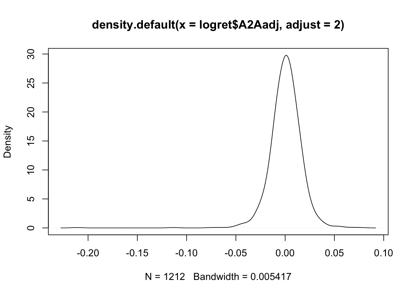 plot(density(logret$A2Aadj,adjust=2))