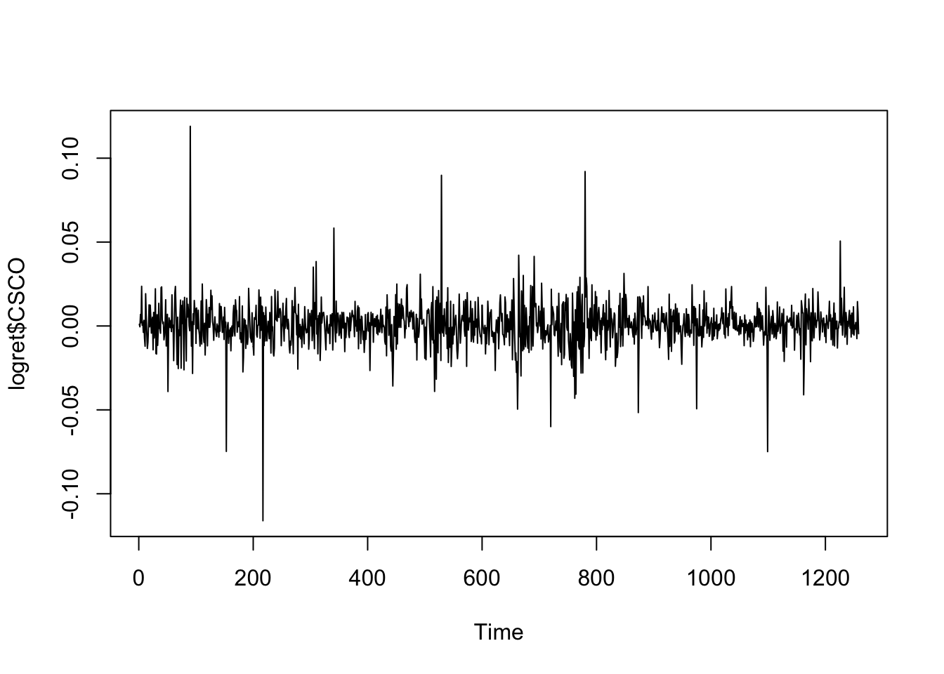 str(logret)## 'data.frame': 1258 obs. of 6 variables: