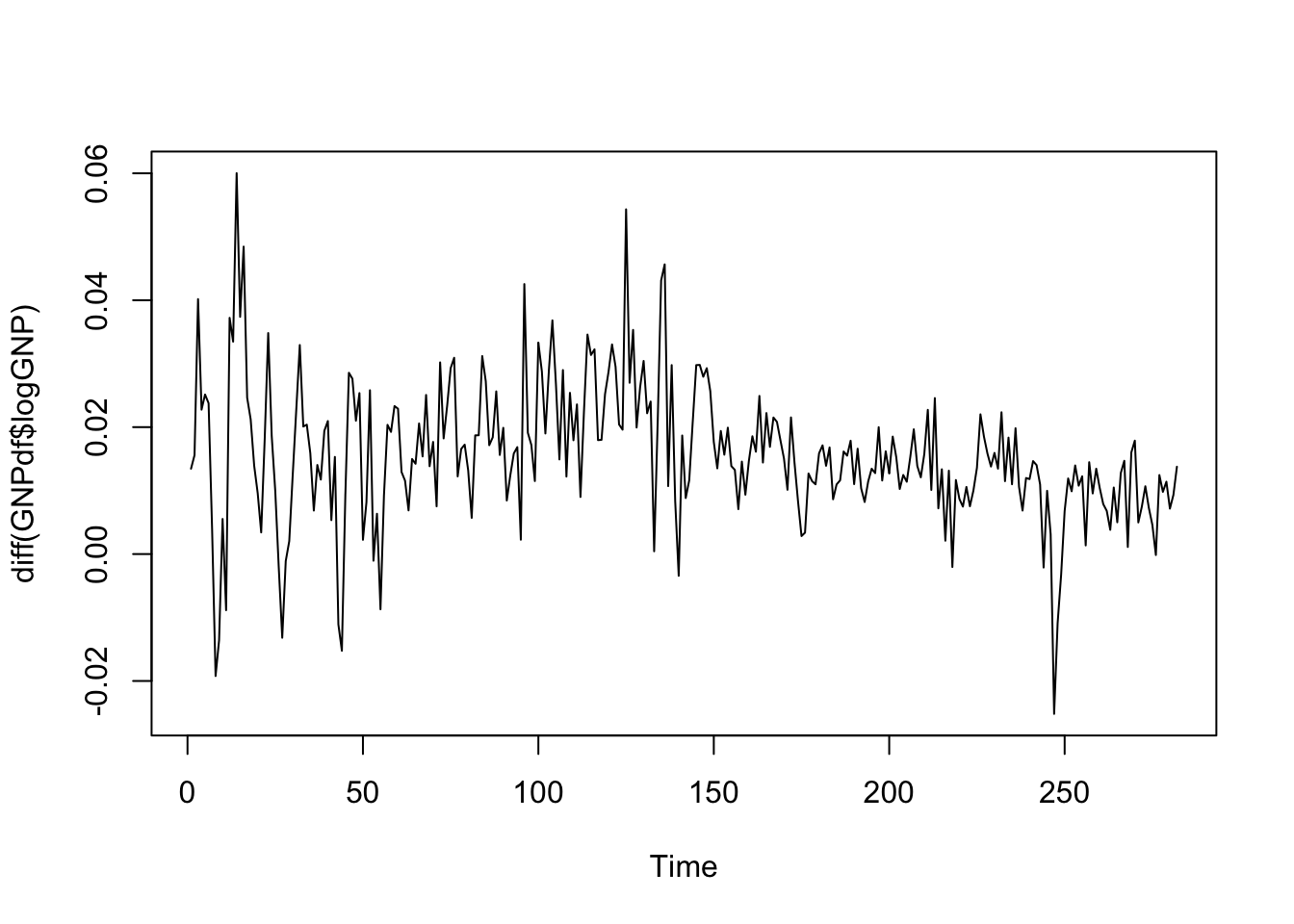 str(GNPdf)## 'data.frame': 283 obs. of 2 variables: