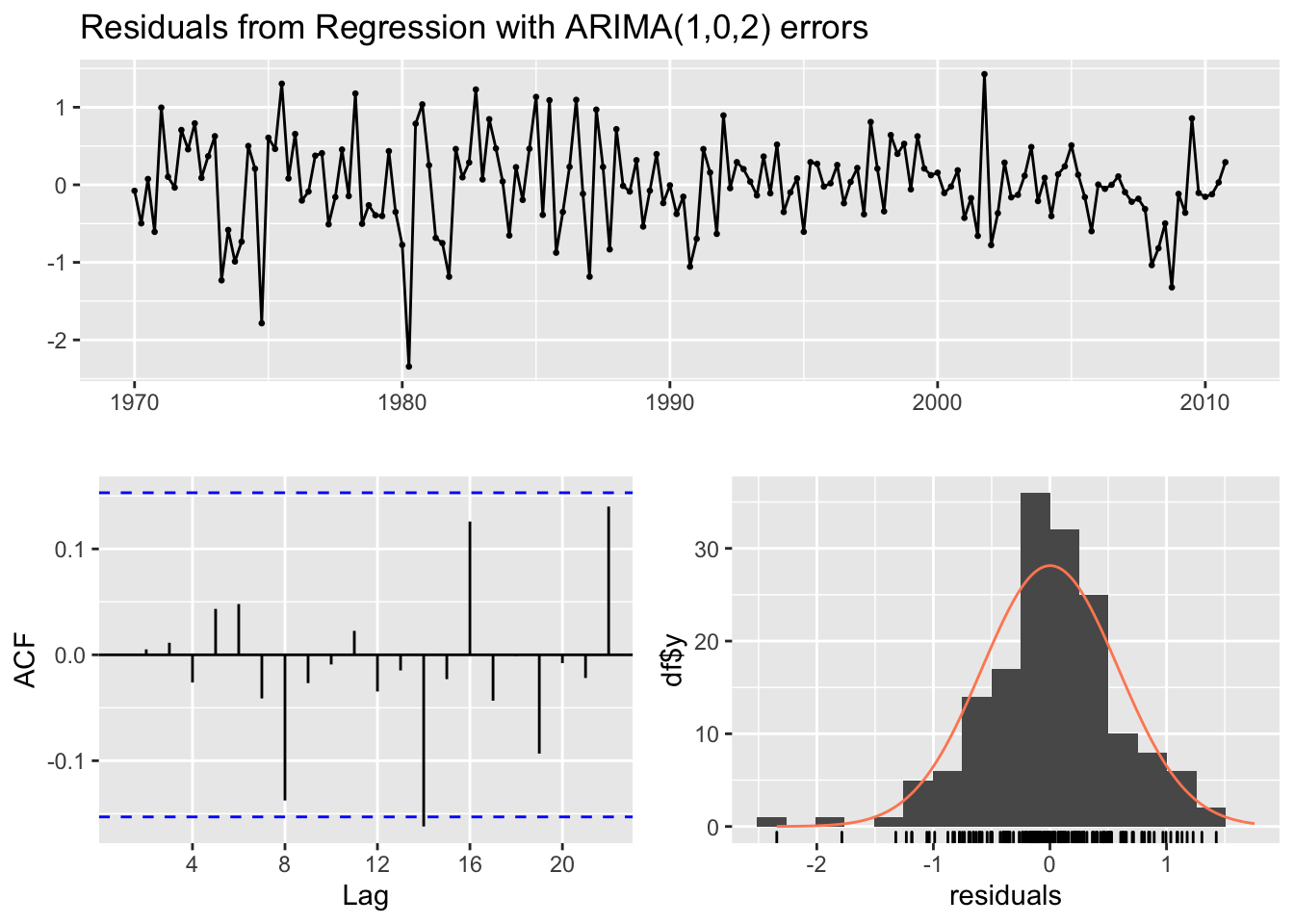 ## data: Residuals from Regression with ARIMA(1,0,2) errors