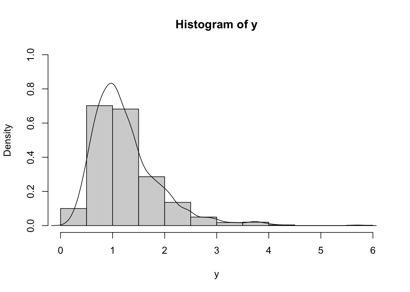 head(y)## [1] 3.5324346 1.2318148 1.3621936 1.0045137 0.9441982 0.7993718