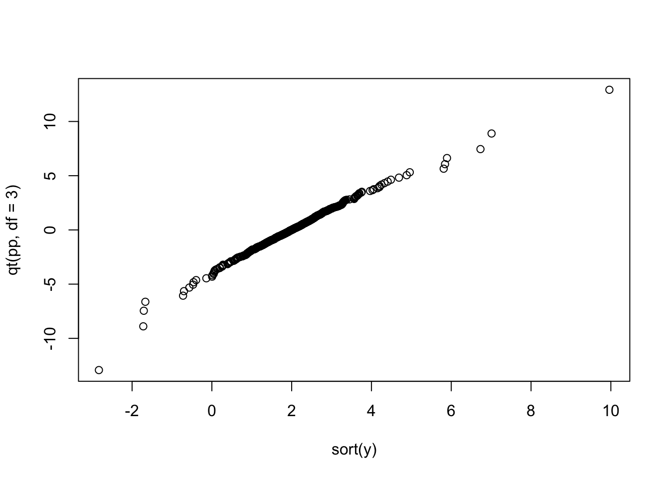 x = rt(1000, df=3) ## Sample from a standard t-student