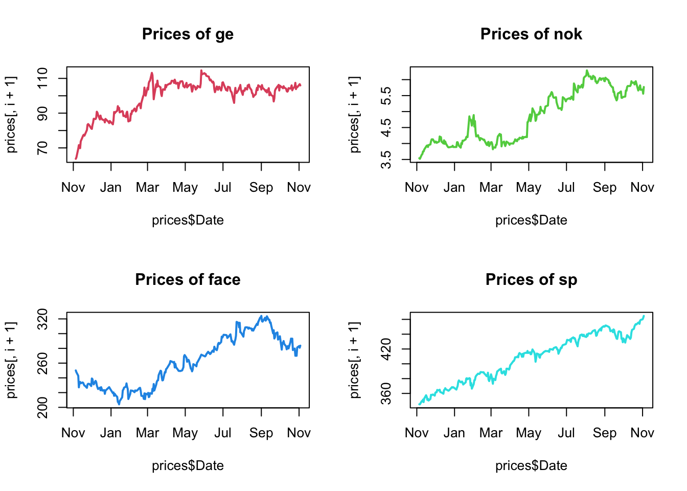 Suppose that at the 5\(^{th}\) of November 2020 we had around 2000$ that we want to invest. In particular we want to invest on Facebook, General Electric and Nokia.