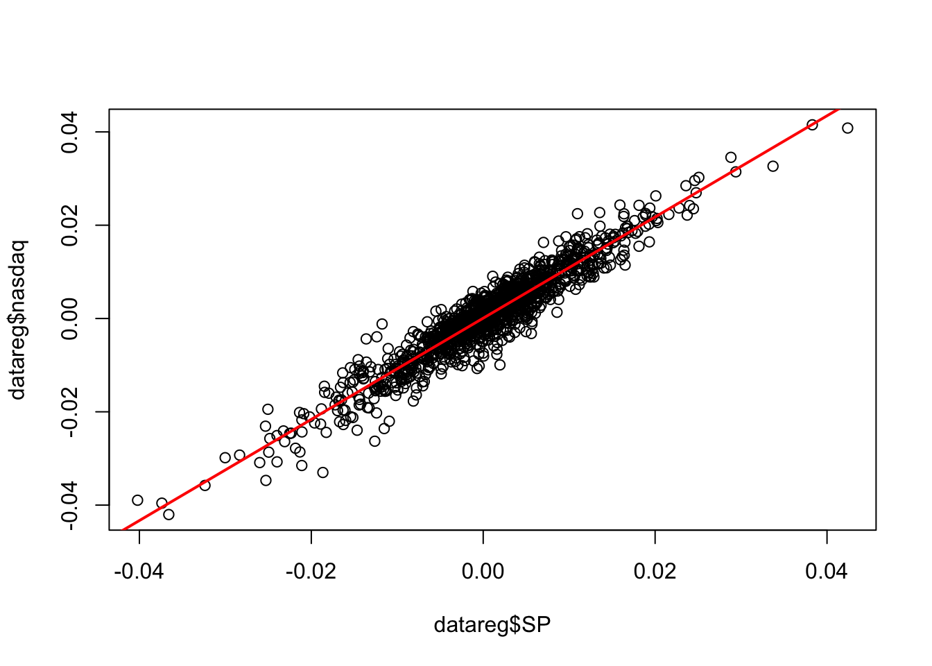 cor(datareg$nasdaq,datareg$SP)## [1] 0.9488177