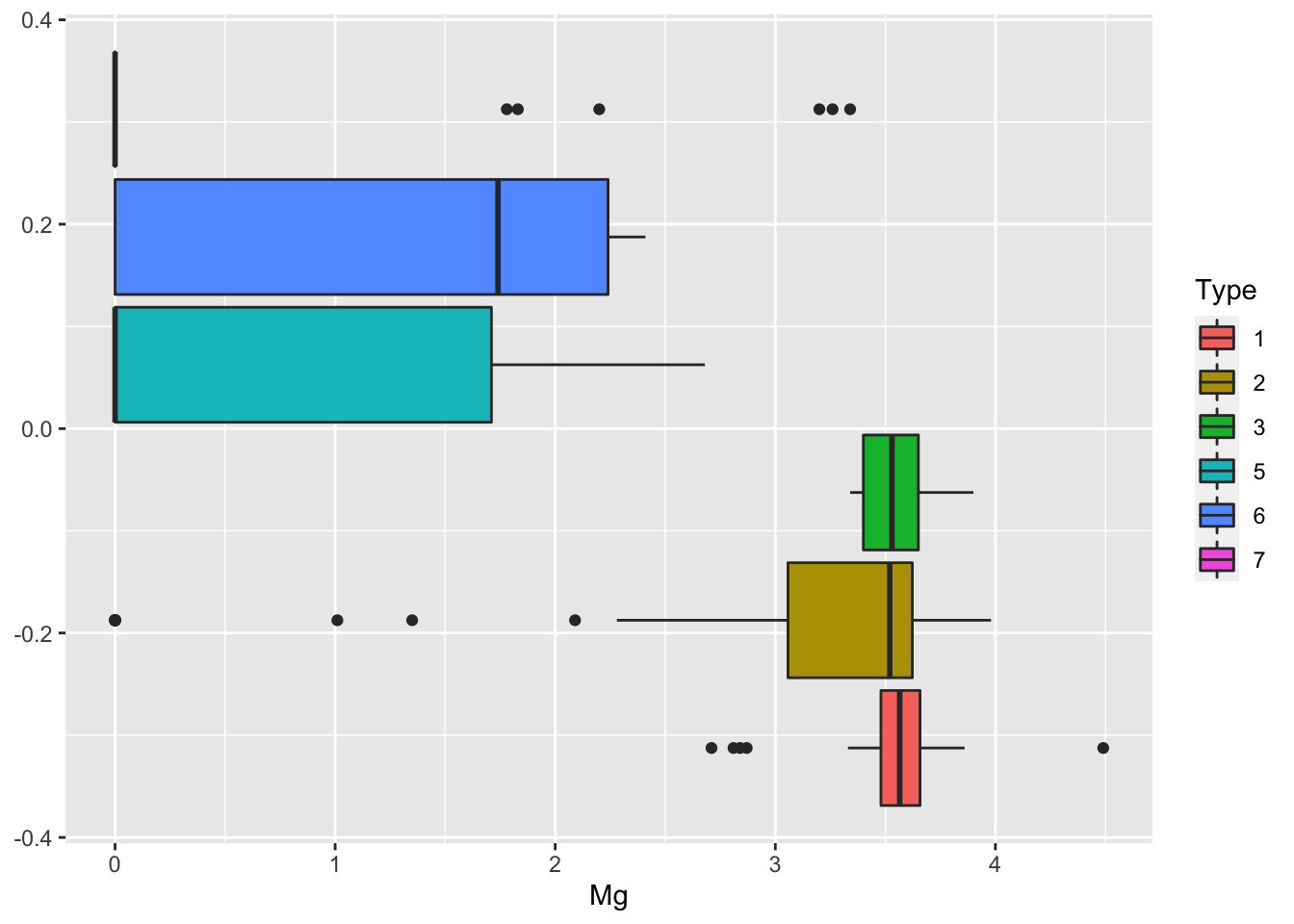 ## $ Fe <dbl> 0.00, 0.00, 0.00, 0.00, 0.00, 0.26, 0.00, 0.00, 0.00, 0.11, 0.24,…