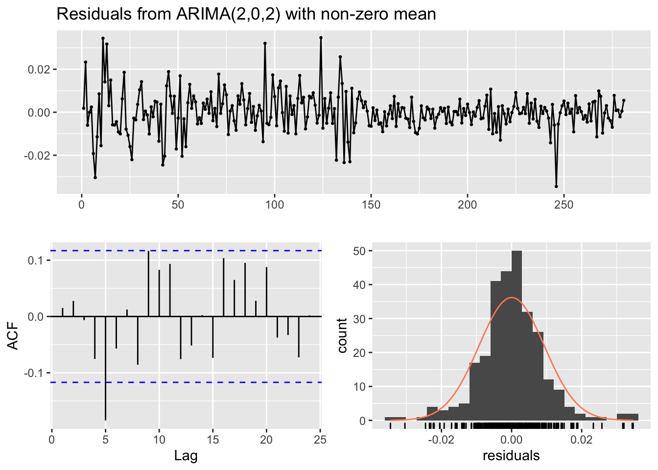 - \(u_t\) = 0.65 \(u_{t-1}+\epsilon_t\) -0.54 \(\epsilon_{t-1}\) + 0.22 \(\epsilon_{t-2}\)