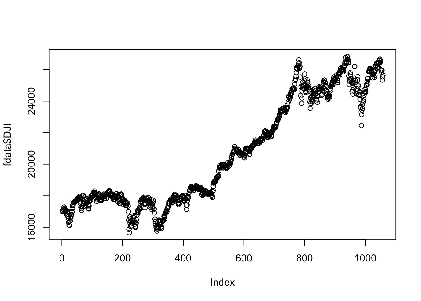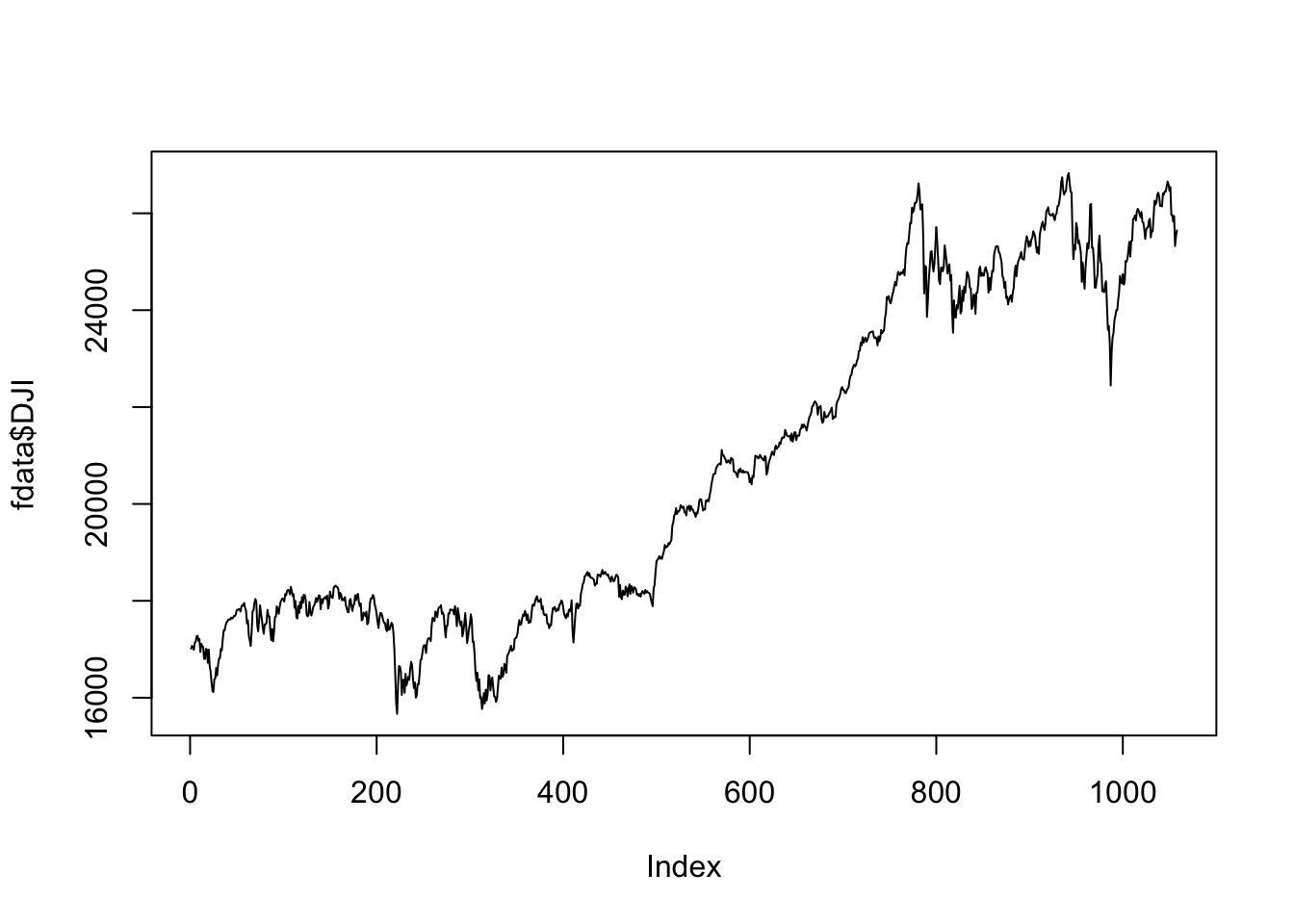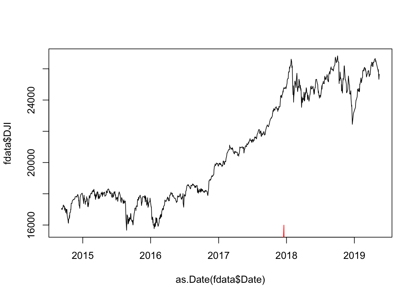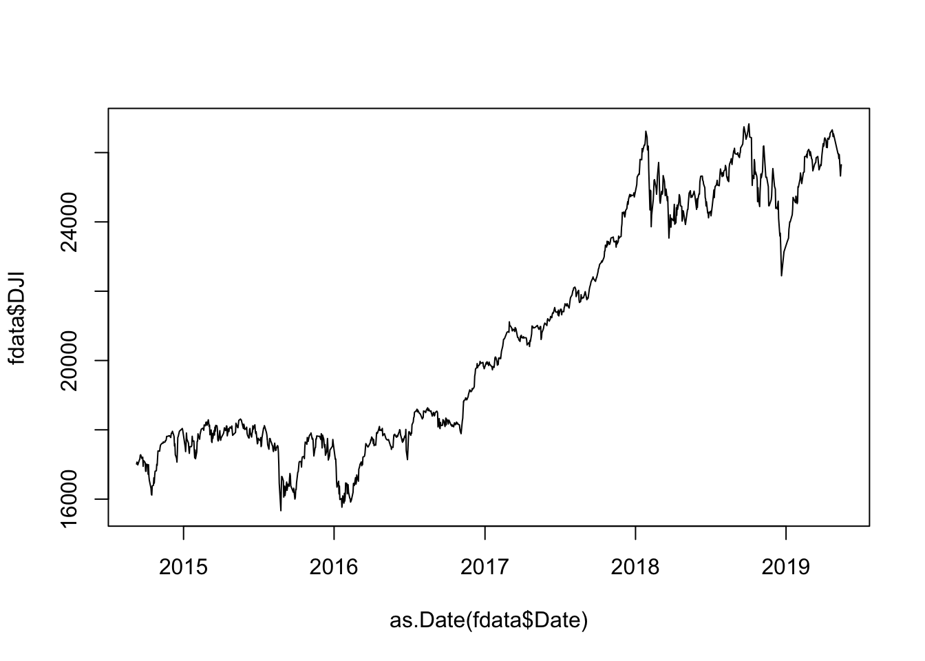 plot(as.Date(fdata$Date) , fdata$DJI,