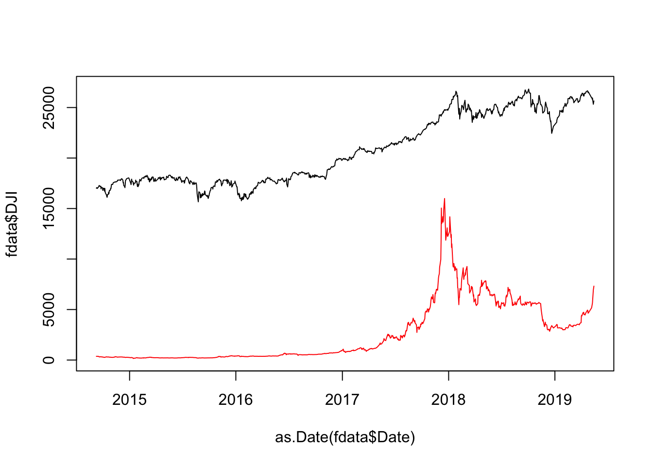 lines(as.Date(fdata$Date) , fdata$BTC.EUR,
